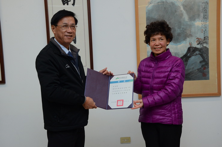 南投縣國中小校長及主任甄選,24日進行口試,縣長林明溱一早前往南投國中為考生加油打氣,並頒發聘書予7位口試委員。林縣長勉勵考生全力以赴,爭取佳績,未來在教育行政崗位上,共同為提升南投教育一起努力。