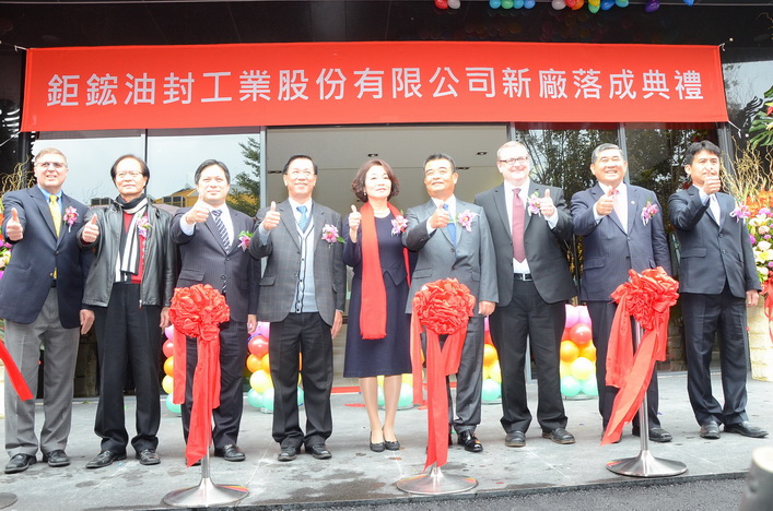 林縣長表示,鉅鋐油封工業股份有限公司在王董事長帶領下走過28個年頭,油封產品行銷海內外,業務年年成長,當前雖正值國際景氣低迷,但去年業績仍持續逆勢成長18%,成績亮麗,相當值得肯定,近年來因舊廠產能不敷市場需求,王董事長遂以「立足南投,面向全世界」的理念,積極擴廠提升產能,提升研發創新能力,為油封業界開創新猶,理念前瞻不僅令人感佩,也為南投創造更多就業機會。