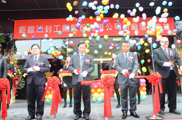 南崗工業區鉅鋐油封工業股份有限公司新廠落成,30日盛大舉行啟用儀式,由董事長王勝煌主持,縣長林明溱伉儷聯袂出席,現場國內外嘉賓雲集,場面相當熱鬧,林縣長特別祝福該廠業績蒸蒸日上,並期許以創新研發精神,帶領產業蓬勃發展,創造更多就業機會,讓南投更安定祥和。