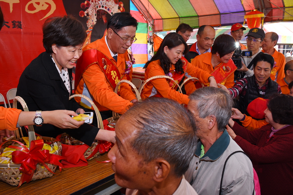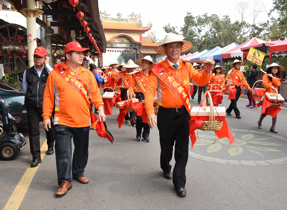 2月22日為元宵節,向來為南投重要元宵活動的2016松柏嶺受天宮元宵米糕桃萬人吃平安活動下午2點登場,由縣長林明溱、受天宮管理委員會主任委員謝金池帶領地方代表、信眾約近200人一同挑米糕桃,行走約1公里。隨後於廟前揭開全國最大11,988台斤的米糕桃並發送,吸引的信眾大排長龍領取。 林縣長表示,受天宮是全國道教的信仰中心,玄天上帝長期香火鼎盛,受到各界的支持與信徒,並庇佑本縣平安。今年米糕桃在受天宮及松嶺鬥茶協會合作辦理下,再度讓米糕桃重量破紀錄,是本縣重要的宗教文化活動,除了今天挑米糕桃活動外,23日也將發放3萬份米糕桃,歡迎全國朋友共襄盛舉。 謝主委指出,米糕桃活動起源於米糕龜習俗,象徵多福多壽,後來受天宮舉辦挑米糕桃活動,從早期4、500台斤到今年11,988台斤,感謝松嶺鬥茶協會及信徒長期支持,讓活動一年比一年盛大,現已與北部平溪天燈、南部鹽水蜂炮、東部炸寒單爺等重大民俗活動並列全台元宵盛事之一。 受天宮的米糕桃活動今年已堂堂進入第19年,每年均有逾200位經玄天上帝允杯同意的信眾,合力出資、出力並由台中市豐原米吉米食天地負責調配、烹製,合力完成超級大米糕桃。難得一見的巨大米糕桃吸引了許多信眾與遊客前來觀看,並等待揭桃儀式。 當天林縣長、謝主委、縣議員于秀英、羅美玲、縣府民政處長吳燕玲等人首先從受天宮歡迎門啟程,率領200位信眾挑著米糕桃前往受天宮大殿。途中,帝爺公聖轎引領隊伍前進,受到民眾夾道歡迎,林縣長等人也頻頻揮手致意,氣氛熱鬧、隊伍壯觀。 揭桃儀式中,立法委員許淑華、名間鄉長陳文德、縣議員陳翰立、曾振炎等人也都到場,由林縣長帶領所有來賓共同揭幕,11,988台斤米糕桃正式亮相,偕音「一一久發發」,祝福所有人新年發財。隨後,林縣長帶領所有信眾一同向玄天上帝上香祈福,祈求風調雨順、國泰民安,並於開香後發放小米糕桃給所有信眾,場面熱鬧。