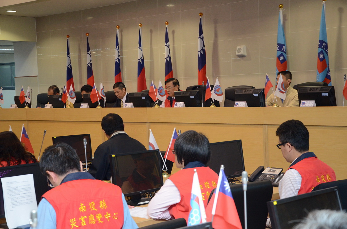南投山坡地約佔全縣總面積百分之95,地震、颱風或豪雨事件經常造成坡地災害,因此這次演習針對颱風、地震等複合性災害進行兵棋推演模擬演練,如災害發生時,將依照各級災害應變中心開設運作機制、維生管線搶修作為及鄉民收容所開設作業等各種狀況進行應變。各單位都詳細報告各種具體作法與運作流程,期透過動員協力做好準備,並藉由兵棋推演讓各單位能熟悉災害發生時運作情形。