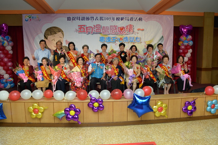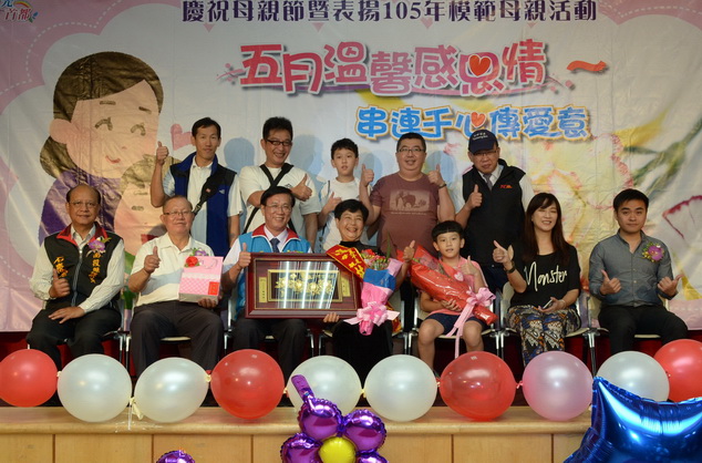 縣府105年度模範母親表揚活動3日上午在日月潭青年活動中心盛大展開,來自13鄉鎮市的15位模範母親由子女的陪同進場,與各鄉鎮市農特產一起走過星光隧道,接受縣長林明溱的祝福。林縣長逐一頒發「花開富貴」金匾表揚獲獎模範母親的優良事蹟,並祝福全縣偉大的母親們母親節快樂!