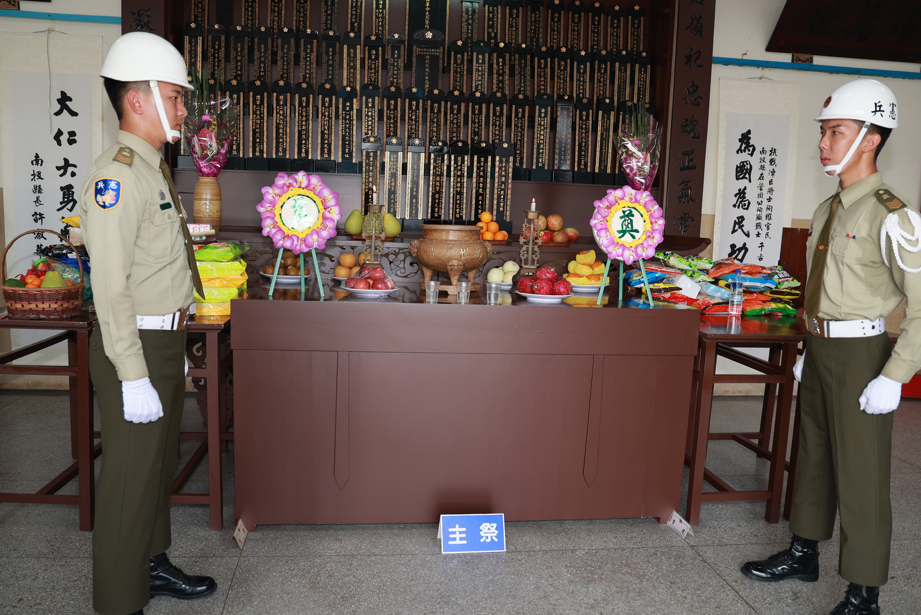 縣長許淑華也頒贈「為國為民功垂史冊」、「大仁大勇氣壯山」輓聯弔唁奠祭;輓聯在忠烈祠內高高掛起,烘托出肅穆氣氛,憲兵分列二側禮兵,更顯隆重。