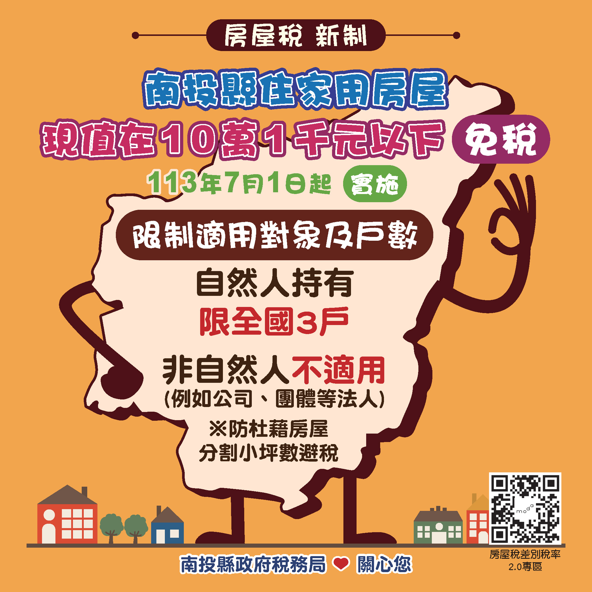 房屋稅新制2.0已於113年7月1日上路,原持有多戶住家用免稅房屋之民眾請注意,因增訂僅自然人適用及全國3戶限制,針對法人所有房屋或住家用房屋第4戶起已不再續享免稅優惠。
