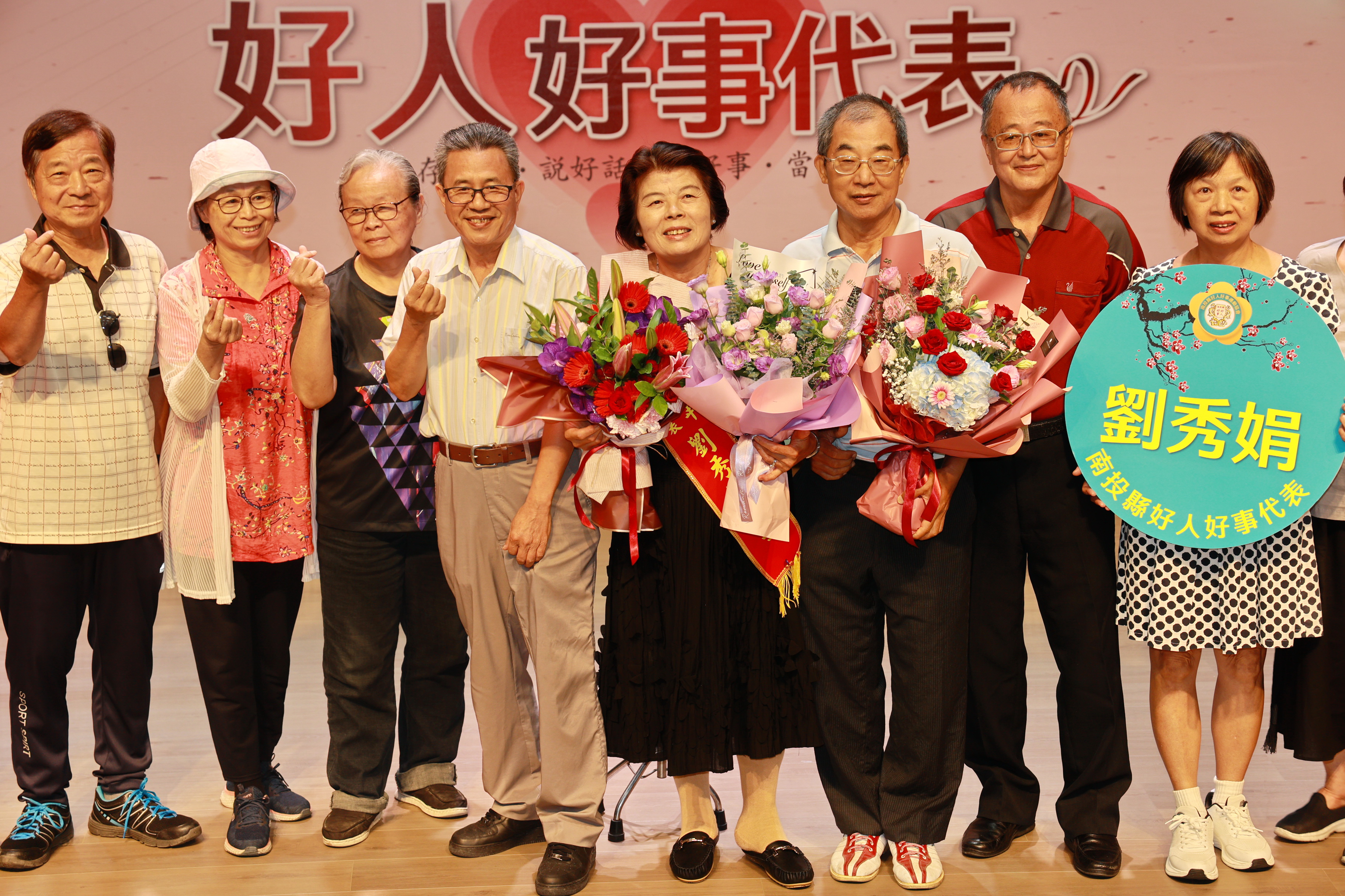 表揚好人好事,他們的故事,如沐春風。王副縣長、南投縣好人好事運動協會理事長劉威麟、縣議員林儒暘、張婉慈,分別代表縣府、協會、縣議會,頒贈獎狀、禮品,得獎者親朋好友也到場合影,分享榮耀。