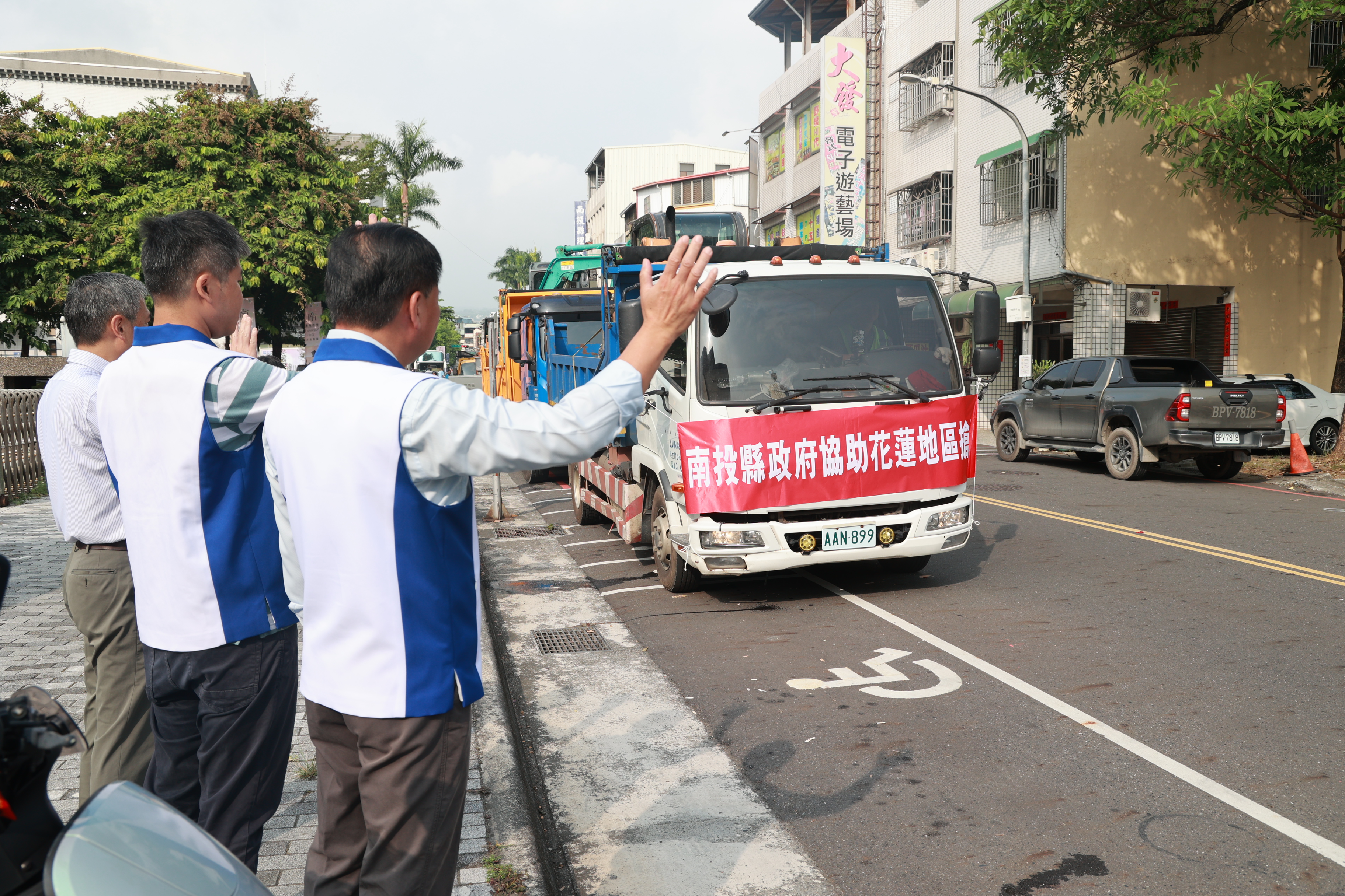 花蓮災變,大量土石仍急待清理,南投縣長許淑華下令馳援救災,1日上午由工務處長張弘岳督軍,動員鏟土機2部、挖土機2部及傾卸貨車2輛,共計出動6部機械,出發前往花蓮。行前,張弘岳進行任務提示,勉勵機具及人員依指揮救災,務必注意安全。