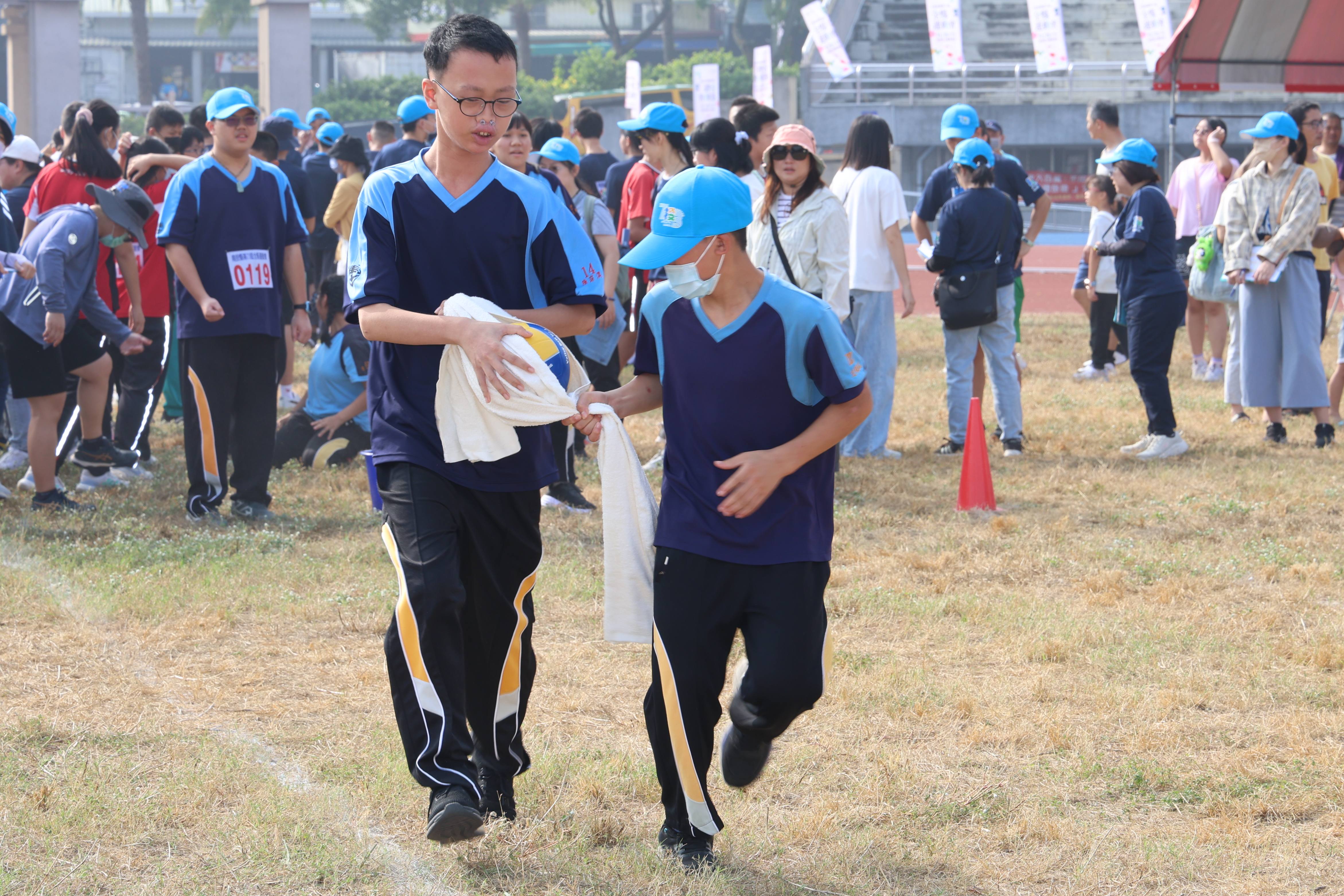 今年的適性體育運動競賽分別在縣立體育場、三和游泳池、竹山高中、南崗國中等不同場地競技,比賽項目多元,包含田徑、游泳、桌球、輪鞋競速及地板滾球等等,選手們在賽場上全力以赴,像由兩人同步合力以布縛皮球折返跑的「雙龍搶珠」競速,連乘坐輪椅的選手都「無障礙」的參與競賽,展現堅強意志與團隊精神,獲得觀眾熱情加油掌聲不斷。