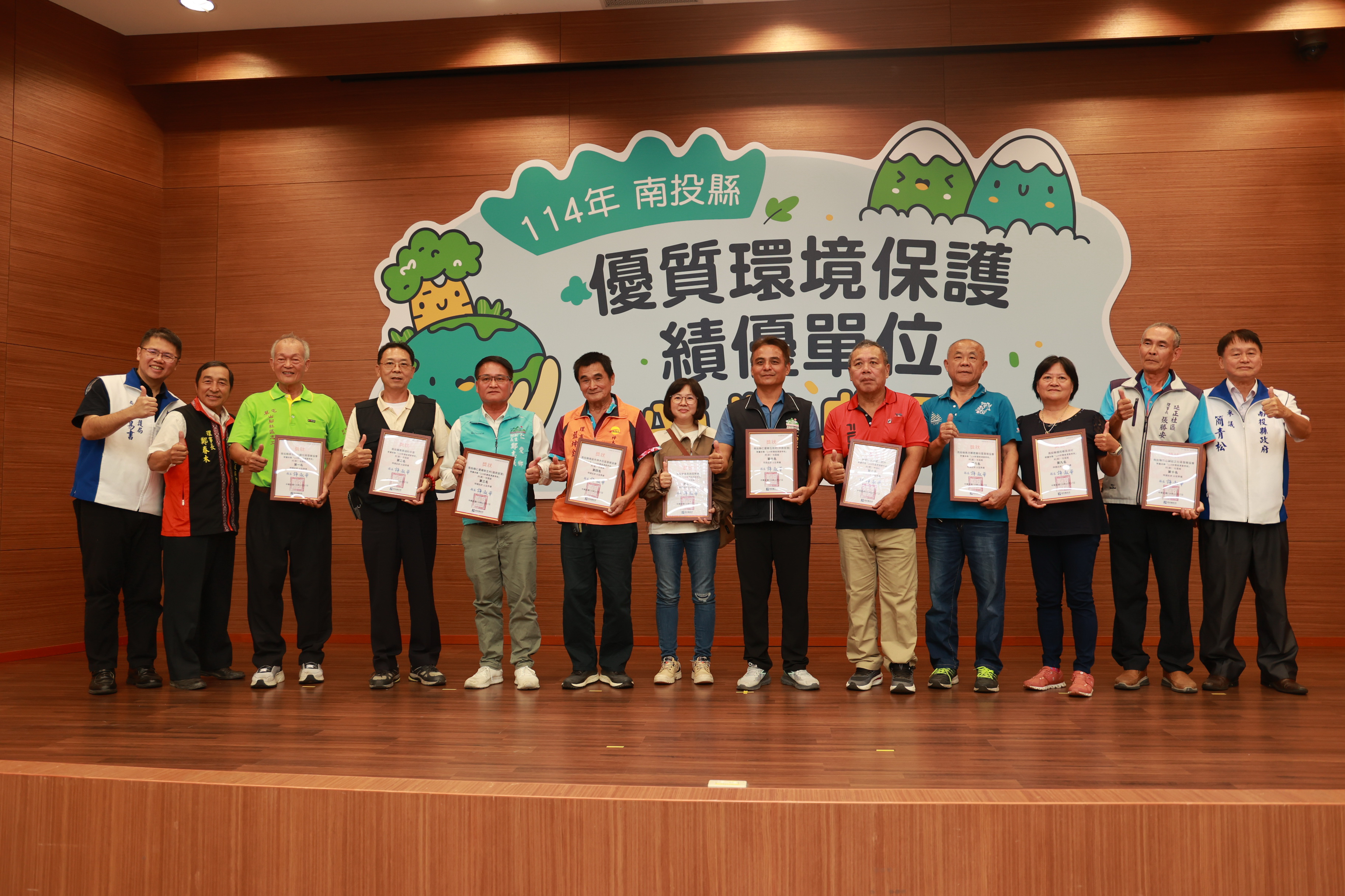 114年南投縣優質環境績優單位頒獎典禮,17日表揚環境教育、環境衛生及綠色採購績優單位,縣府肯定各公民營單位及團體環保績效,期望帶動民眾響應。