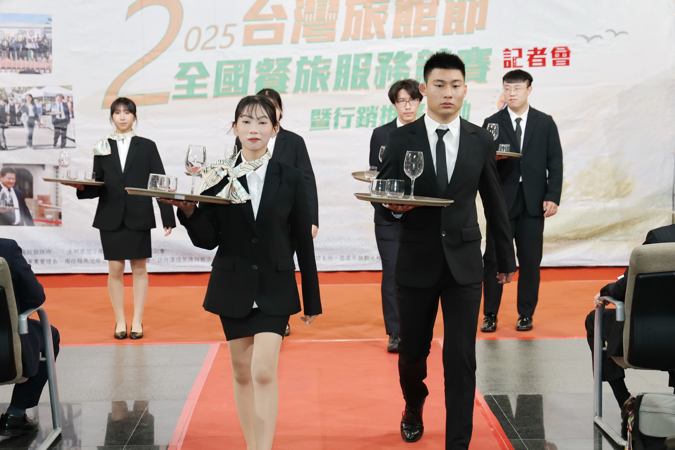 李理事長進一步指出,自2008年創辦「餐旅服務競賽」以來,賽事已從地方活動發展為全國最具代表性的餐旅技能舞台,每年都吸引眾多青年展現專業。競賽不僅讓學生能將課堂所學落實於實務情境,也有助於培養自信與建立職涯方向。他期待透過這項具影響力的活動,吸引更多年輕世代投入餐旅領域,為台灣旅館業注入持續的創新動能。本屆賽事劃分為高中職、大專以及在職組三大組別,競賽項目包含「整床競賽」與「托盤競賽」。今年特別強化工作流程標準化、現場應對能力與服務美學等評分元素。