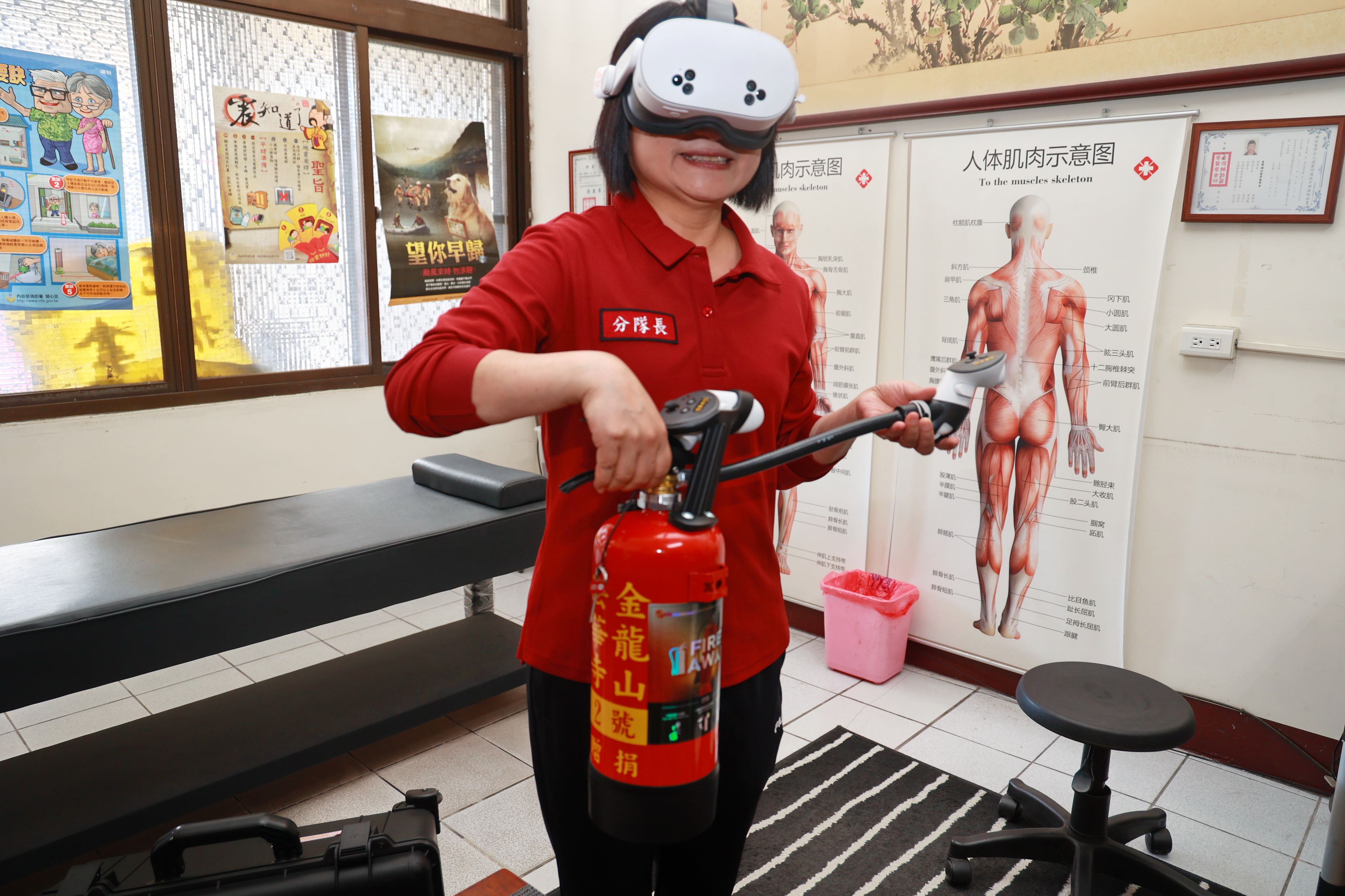 宣傳活動中,埔里防火宣導隊分隊長曾秀月展示中寮鄉法華寺捐贈、價值約25萬元的「虛擬實境滅火器」。民眾戴上VR眼鏡即可在虛擬情境中反覆練習滅火動作,相較過去使用油盤與乾粉滅火器,不僅免除清理麻煩,更兼具環保與安全,讓防火宣導更生動有趣。