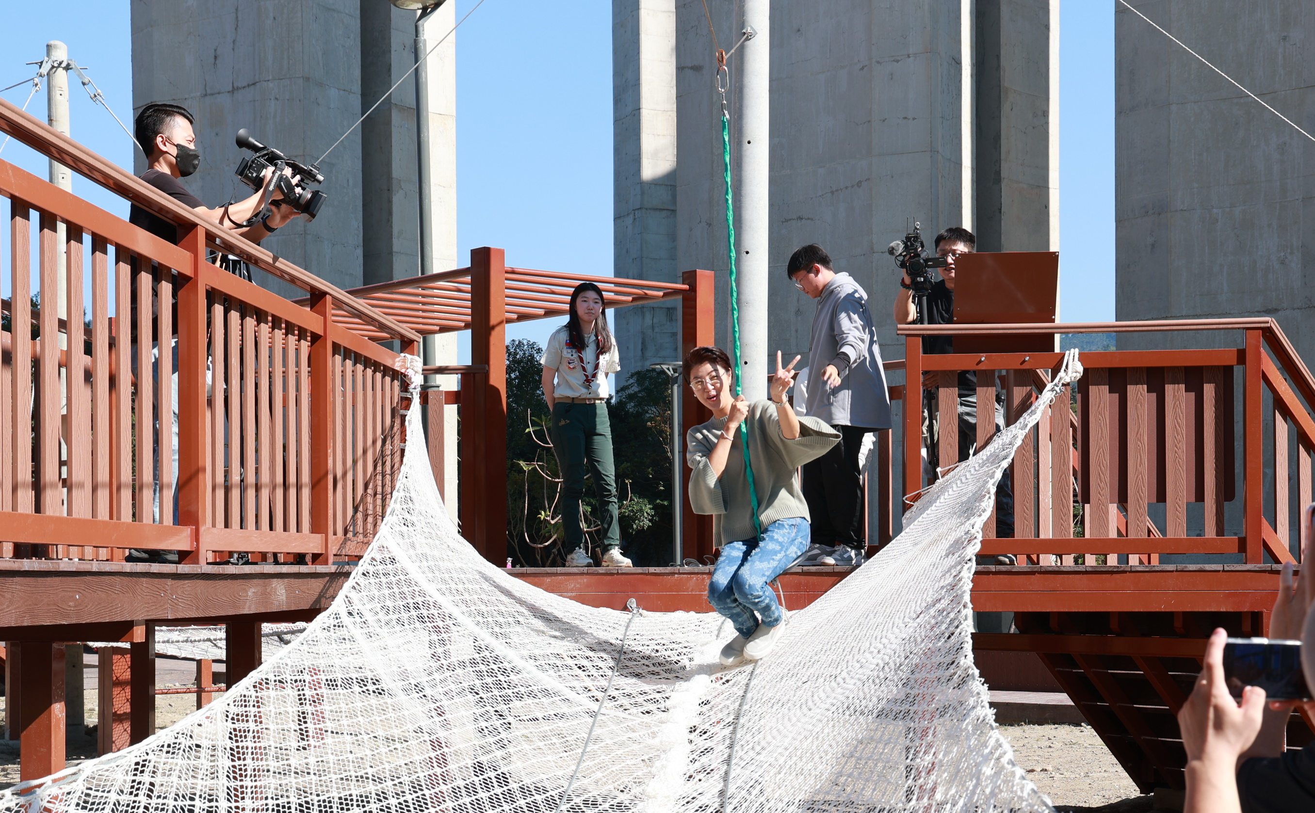 南投又多了一處好玩的地方!國道6號國姓交流道下的橋聳雲天,增設親子遊樂設施,還有山訓場,開幕第一天,民眾聞訊而來,跑來體驗,玩得不亦樂乎。