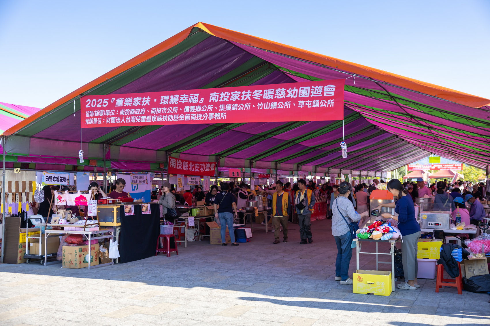 南投家扶中心7日在南投縣會展中心,舉辦一年一度的冬暖慈幼園遊會,現場超過百家公司行號及愛心人士參與設攤,吸引許多民眾逛攤、挖寶、吃美食。源盟建設董事長鄭憲欣藉此機會捐贈公務車,許縣長到場見證,期盼其善舉拋磚引玉,凝聚更多社會愛心一起做公益,給弱勢學童更大的希望。