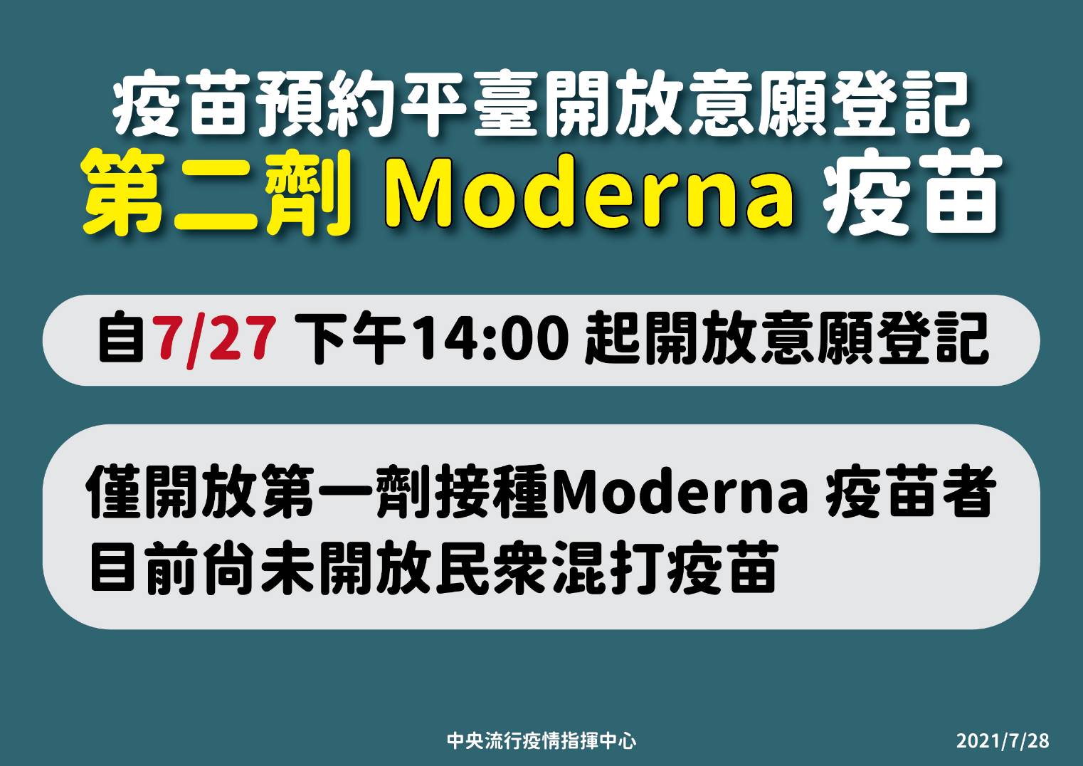 防疫宣傳 居家照護關懷手冊 防疫補助 勞工紓困 農漁畜牧 觀光紓困 企業紓困 租稅紓困 藝文紓困 中央各部會防疫專區 首頁 防疫宣傳 第二劑Moderna... 第二劑Moderna疫苗預約平臺開放意願登記 公佈單位:新聞及行政處 發佈日期:110/7/28