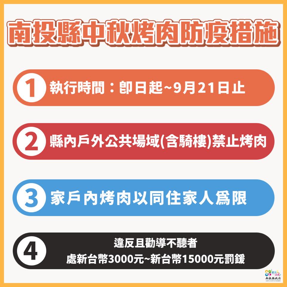 防疫宣傳 居家照護關懷手冊 防疫補助 勞工紓困 農漁畜牧 觀光紓困 企業紓困 租稅紓困 藝文紓困 中央各部會防疫專區 首頁 防疫宣傳 南投縣烤肉活動應遵守... 南投縣烤肉活動應遵守防疫措施 公佈單位:新聞及行政處 發佈日期:110/9/13