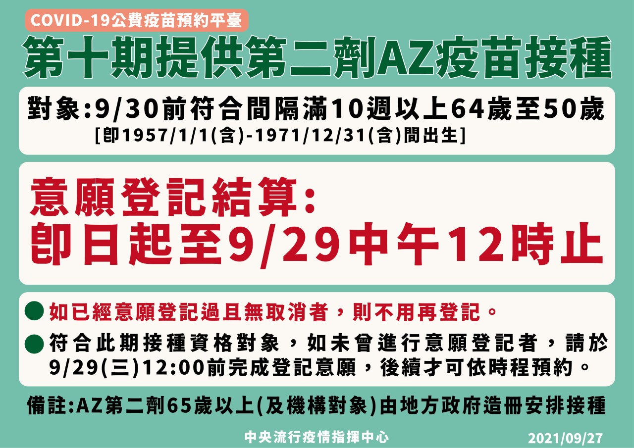 防疫宣傳 居家照護關懷手冊 防疫補助 勞工紓困 農漁畜牧 觀光紓困 企業紓困 租稅紓困 藝文紓困 中央各部會防疫專區 首頁 防疫宣傳 第十期提供第二劑AZ... 第十期提供第二劑AZ疫苗接種意願登記 公佈單位:新聞及行政處 發佈日期:110/9/28