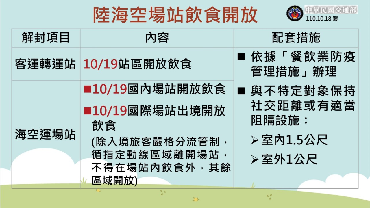 防疫宣傳 居家照護關懷手冊 防疫補助 勞工紓困 農漁畜牧 觀光紓困 企業紓困 租稅紓困 藝文紓困 中央各部會防疫專區 首頁 防疫宣傳 陸海空場站防疫配套措... 陸海空場站防疫配套措施 公佈單位:新聞及行政處 發佈日期:110/10/18