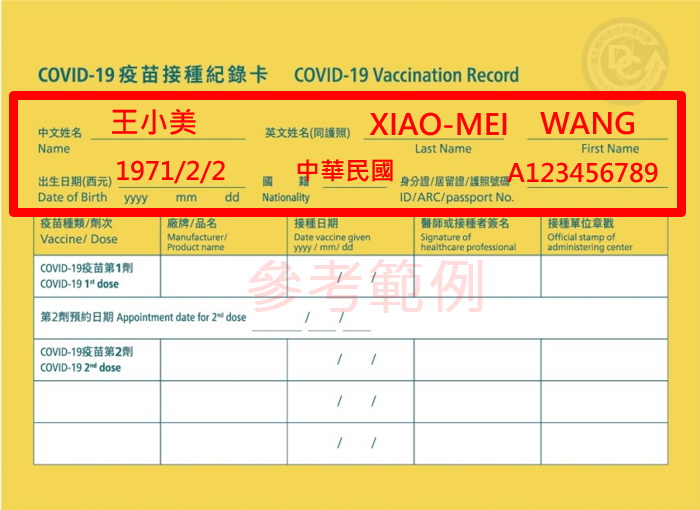 因應全球COVID-19疫情,衍生民眾申請COVID-19疫苗接種證明文件的需求,故嚴重特殊傳染性肺炎中央流行疫情指揮中心前於110年8月5日宣布,建議民眾出國可採下列三種方式取得證明文件:(一)由接種單位開立之「COVID-19疫苗接種紀錄卡」(俗稱黃卡),填列完整西元年、護照號碼及同護照之英文姓名。