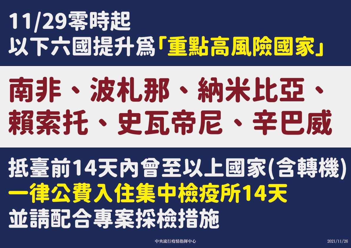 防疫宣傳 居家照護關懷手冊 防疫補助 勞工紓困 農漁畜牧 觀光紓困 企業紓困 租稅紓困 藝文紓困 中央各部會防疫專區 首頁 防疫宣傳 重點高風險增6國_工... 重點高風險增6國_工作區域 公佈單位:新聞及行政處 發佈日期:110/11/29