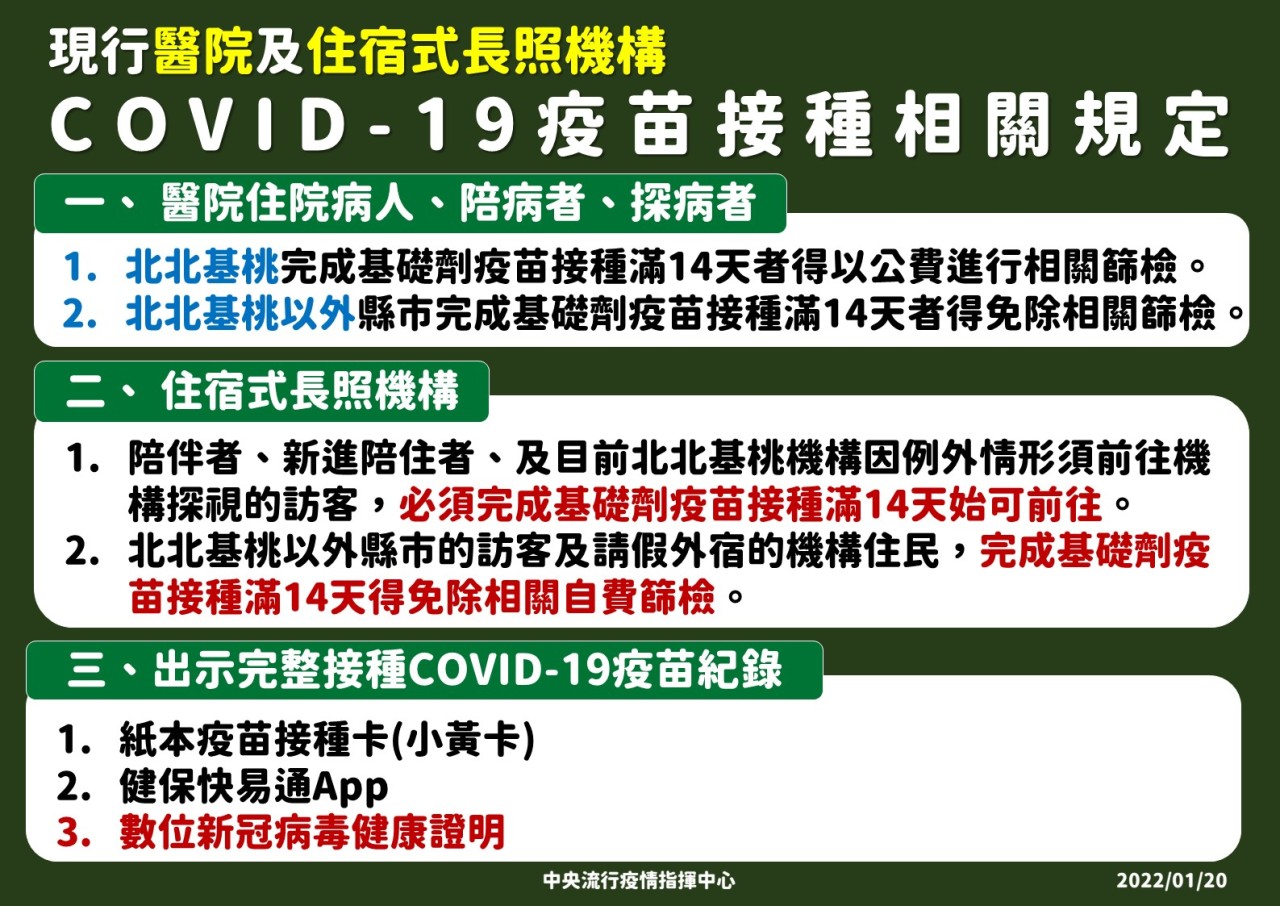 防疫宣傳 居家照護關懷手冊 防疫補助 勞工紓困 農漁畜牧 觀光紓困 企業紓困 租稅紓困 藝文紓困 中央各部會防疫專區 首頁 防疫宣傳 現行醫院及住宿式長照... 現行醫院及住宿式長照機構COVID-19疫苗接種相關規定 公佈單位:新聞及行政處 發佈日期:111/1/20