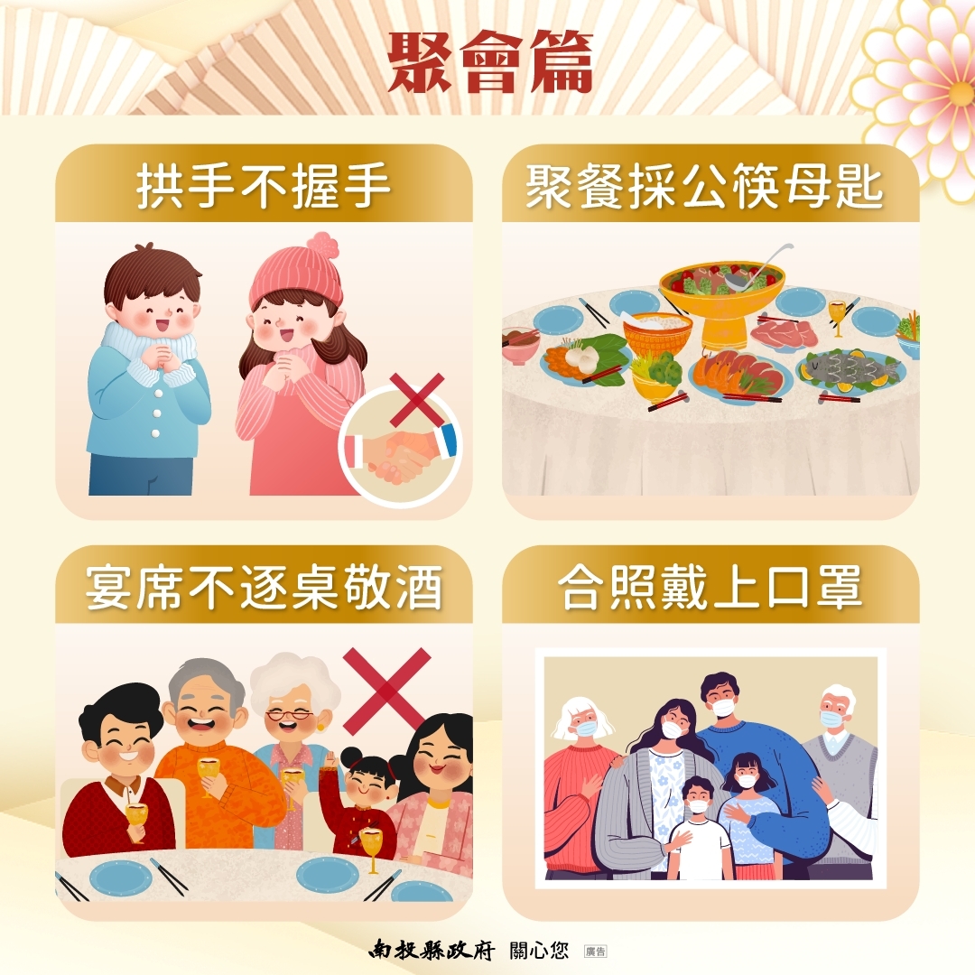防疫宣傳 居家照護關懷手冊 防疫補助 勞工紓困 農漁畜牧 觀光紓困 企業紓困 租稅紓困 藝文紓困 中央各部會防疫專區 首頁 防疫宣傳 春節防疫不可少 春節防疫不可少 公佈單位:新聞及行政處 發佈日期:111/1/20