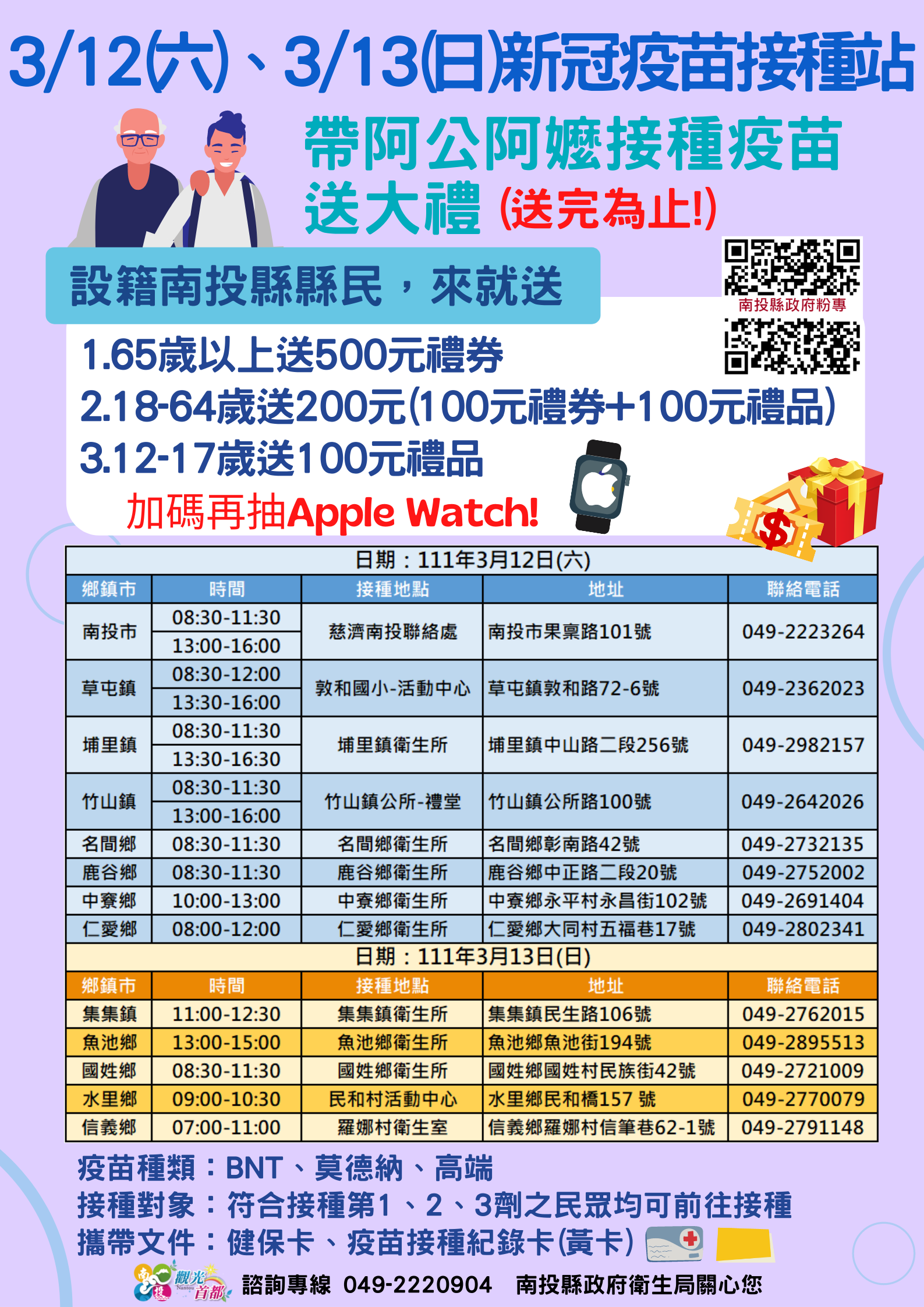 防疫宣傳 居家照護關懷手冊 防疫補助 勞工紓困 農漁畜牧 觀光紓困 企業紓困 租稅紓困 藝文紓困 中央各部會防疫專區 首頁 防疫宣傳 3/12(六)... 3/12(六)、3/13 (日) 新冠疫苗接種站 公佈單位:新聞及行政處 發佈日期:111/3/8