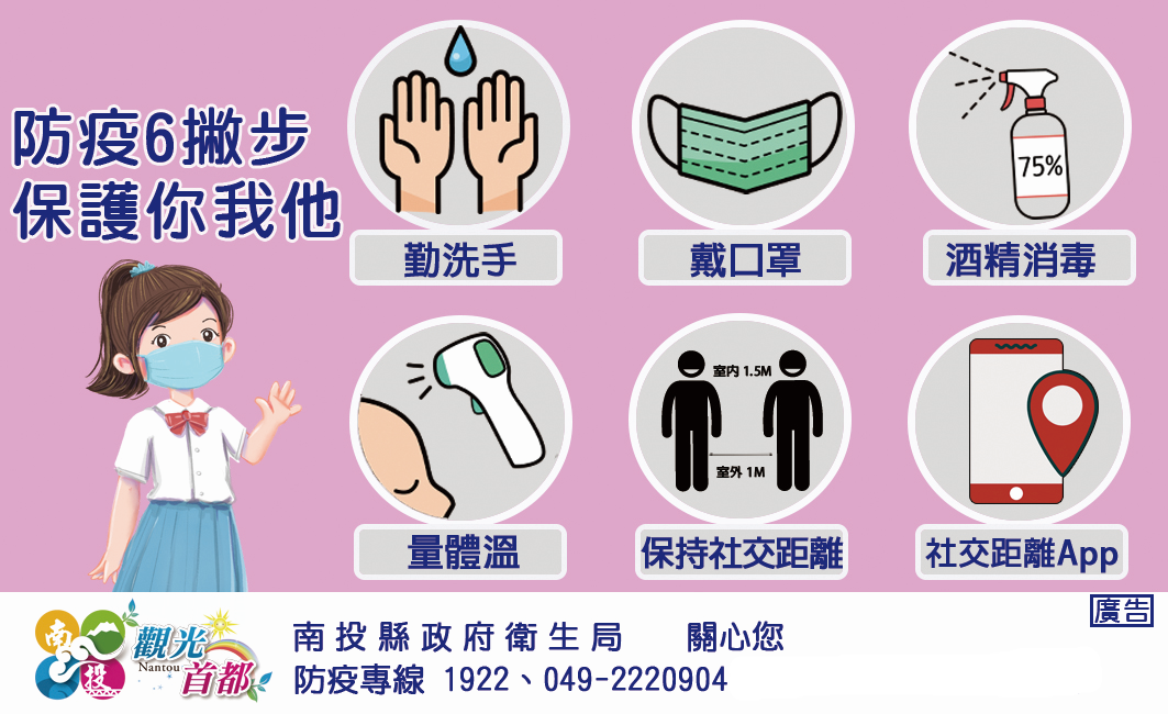 防疫宣傳 居家照護關懷手冊 防疫補助 勞工紓困 農漁畜牧 觀光紓困 企業紓困 租稅紓困 藝文紓困 中央各部會防疫專區 首頁 防疫宣傳 防疫六步驟 防疫六步驟 公佈單位:新聞及行政處 發佈日期:111/4/12