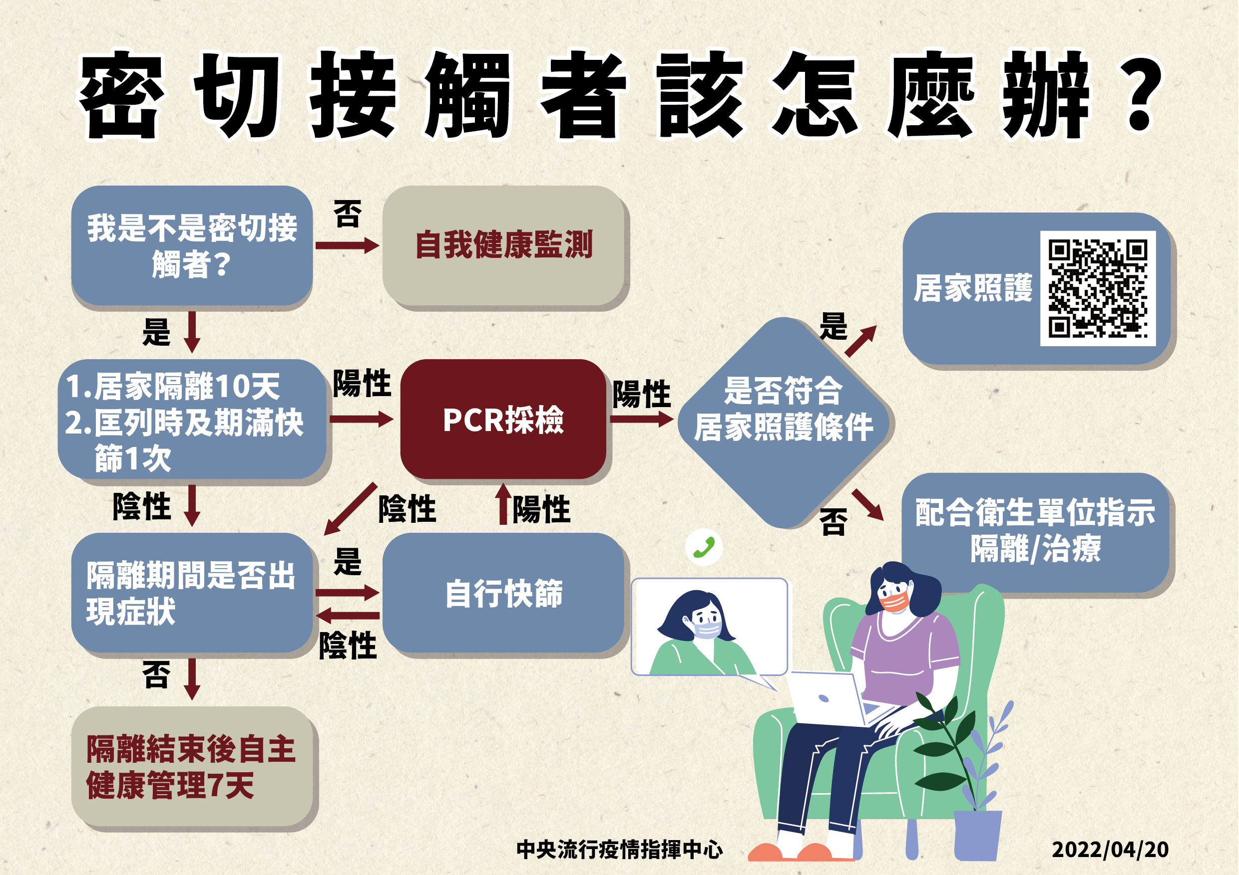 防疫宣傳 居家照護關懷手冊 防疫補助 勞工紓困 農漁畜牧 觀光紓困 企業紓困 租稅紓困 藝文紓困 中央各部會防疫專區 首頁 防疫宣傳 密切接觸者該怎麼辦? 密切接觸者該怎麼辦? 公佈單位:新聞及行政處 發佈日期:111/4/21