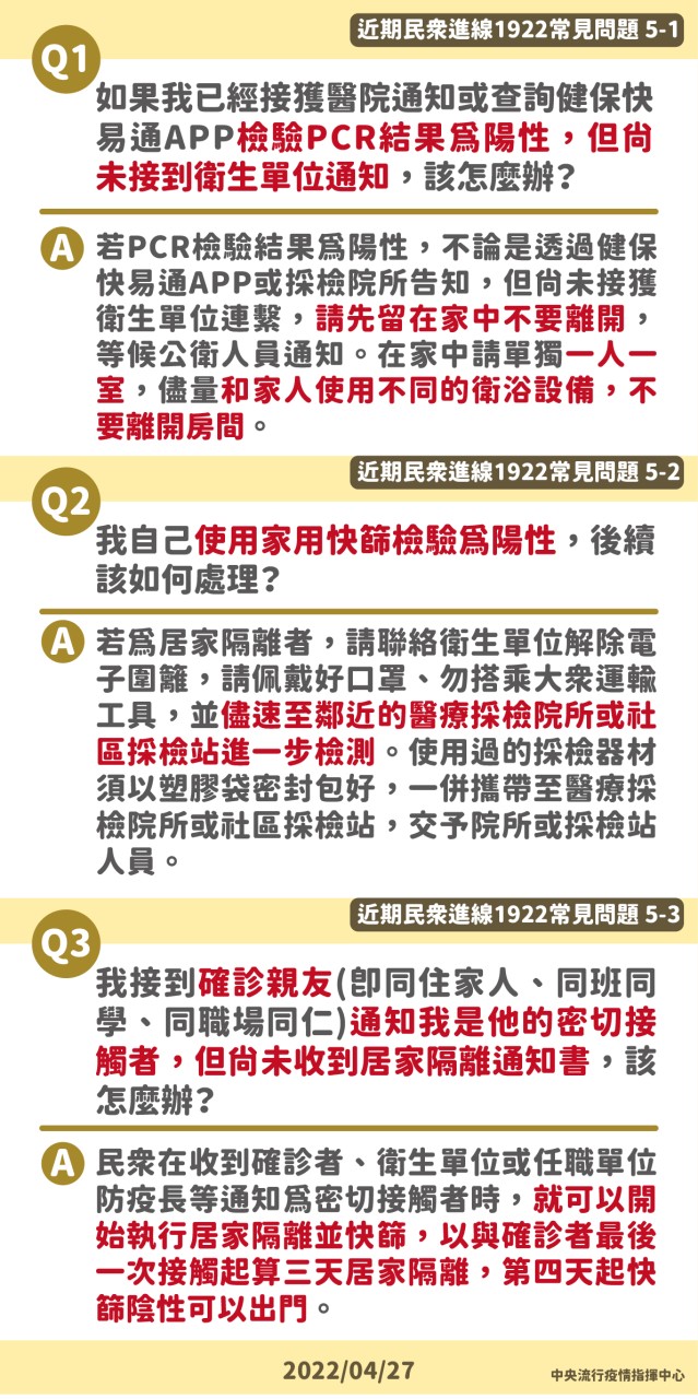 防疫宣傳 居家照護關懷手冊 防疫補助 勞工紓困 農漁畜牧 觀光紓困 企業紓困 租稅紓困 藝文紓困 中央各部會防疫專區 首頁 防疫宣傳 近期民眾進線1922... 近期民眾進線1922常見問題 公佈單位:新聞及行政處 發佈日期:111/4/28