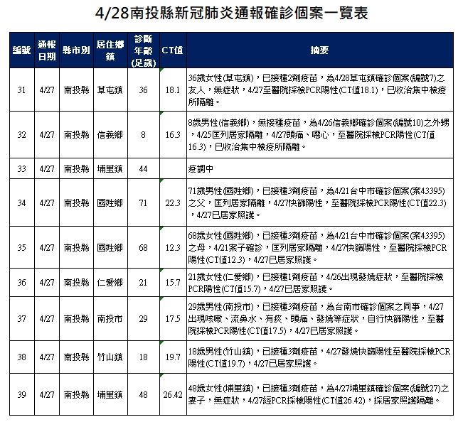 4/28南投縣新冠疫情新聞稿