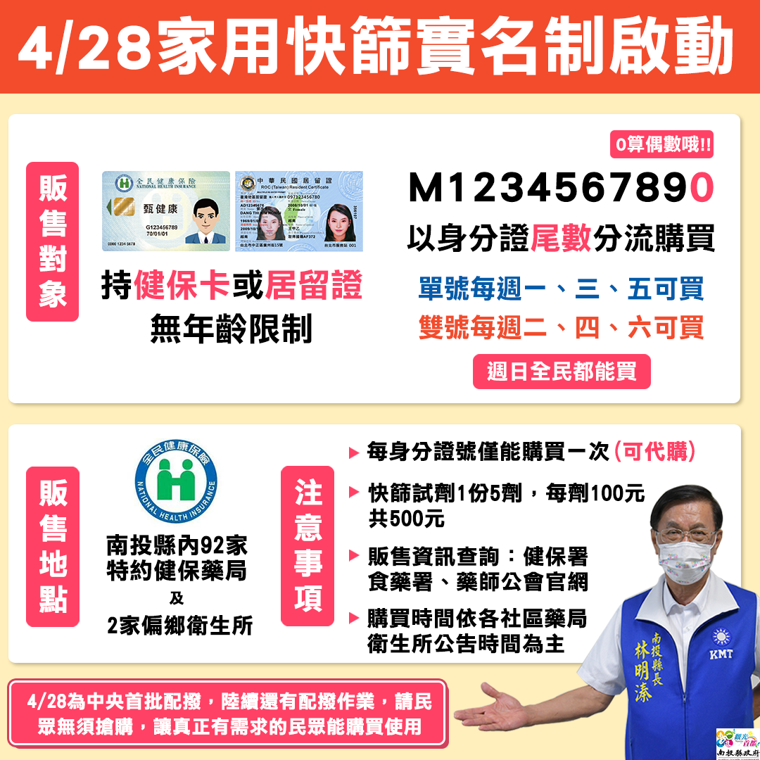 防疫宣傳 居家照護關懷手冊 防疫補助 勞工紓困 農漁畜牧 觀光紓困 企業紓困 租稅紓困 藝文紓困 中央各部會防疫專區 首頁 防疫宣傳 4/28家用快篩實名... 4/28家用快篩實名制啟動 公佈單位:新聞及行政處 發佈日期:111/4/29
