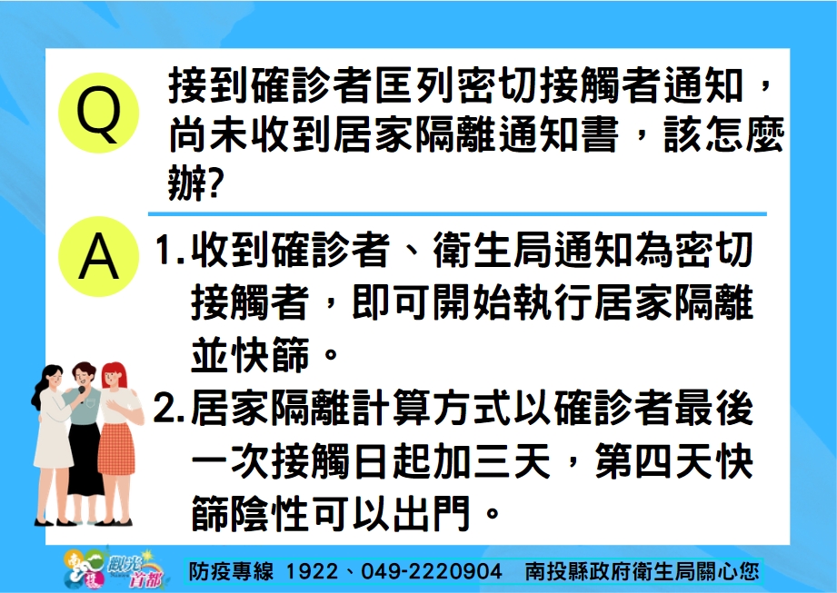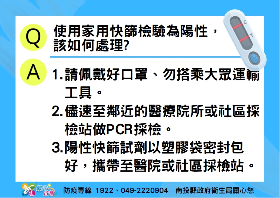 防疫宣傳 居家照護關懷手冊 防疫補助 勞工紓困 農漁畜牧 觀光紓困 企業紓困 租稅紓困 藝文紓困 中央各部會防疫專區 首頁 防疫宣傳 接到確診者匡列密切接... 接到確診者匡列密切接觸者通知及家用快篩檢驗為陽性,該如何處理? 公佈單位:新聞及行政處 發佈日期:111/5/9