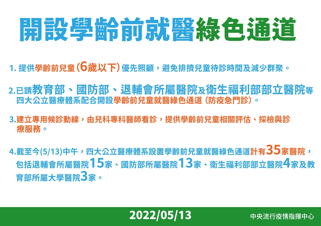 衛生福利部南投醫院感染科主任廖嘉宏說,該院自即日起為學齡前兒童開設就醫綠色通道,開放學齡前兒童就診,兒科專科醫師24小時看診,孩子勿需和成人就診混在一起,可以優先獲得診療資源,民眾可以多利用。