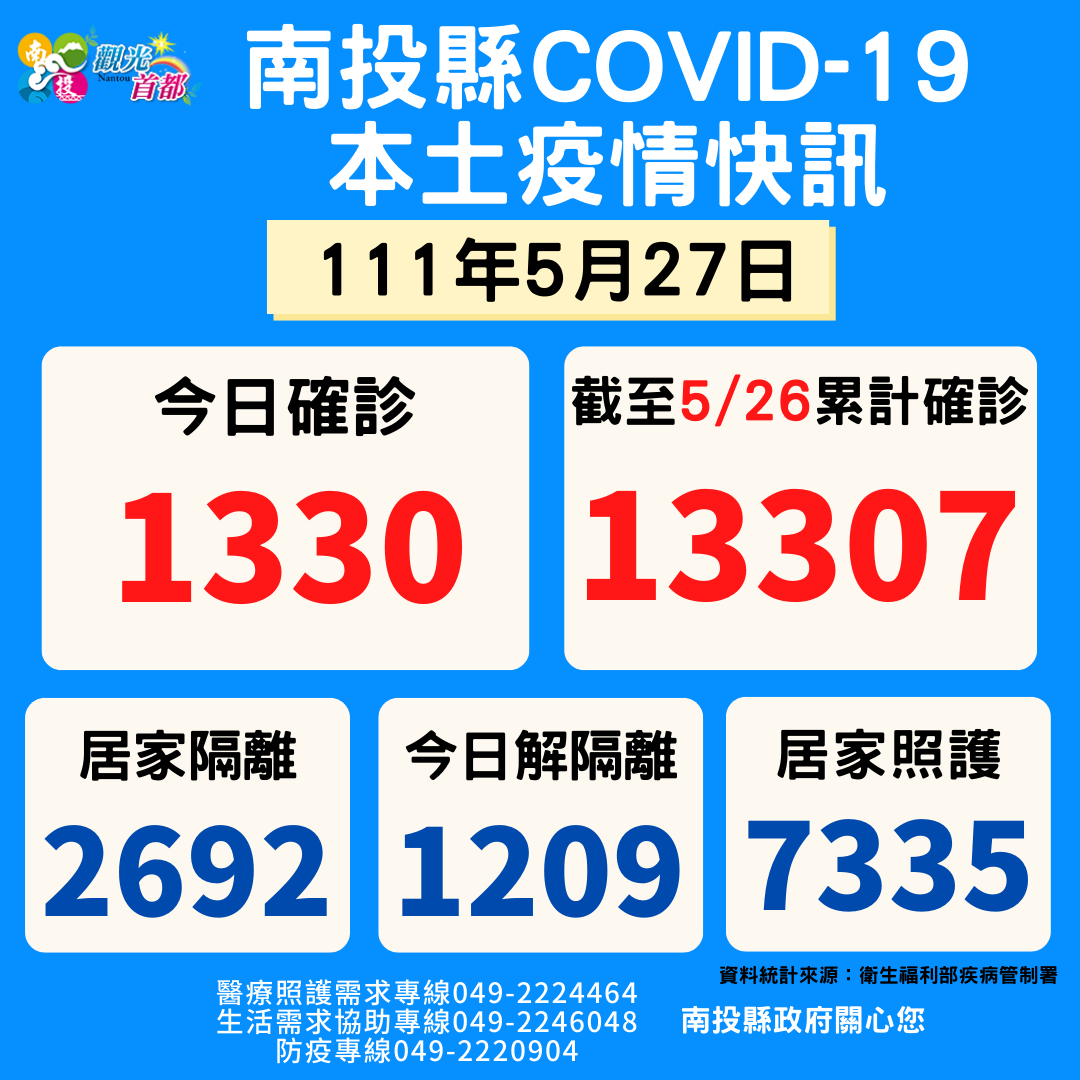 防疫宣傳 居家照護關懷手冊 防疫補助 勞工紓困 農漁畜牧 觀光紓困 企業紓困 租稅紓困 藝文紓困 中央各部會防疫專區 首頁 防疫宣傳 5月27日南投縣疫情... 5月27日南投縣疫情快訊 公佈單位:新聞及行政處 發佈日期:111/5/27
