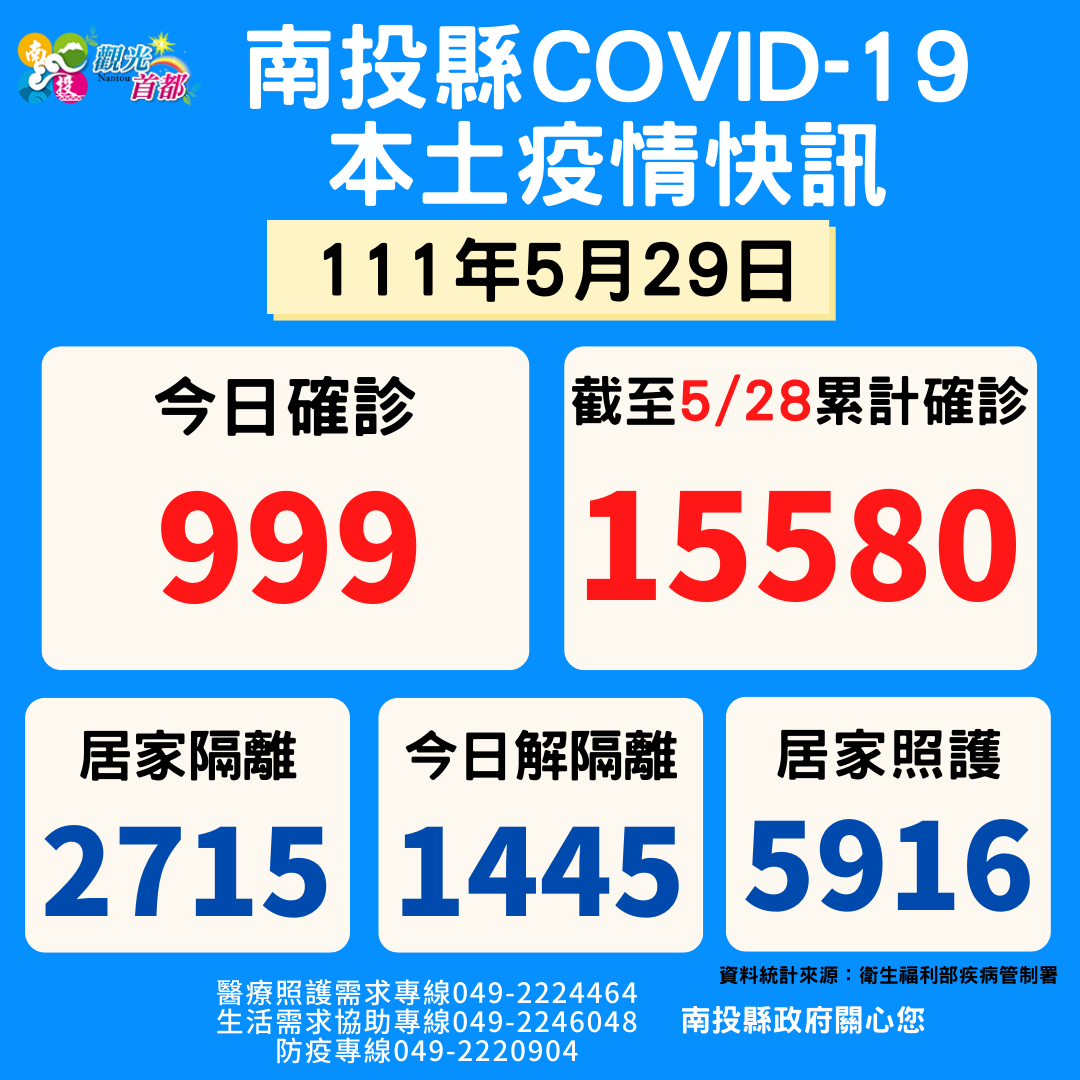 防疫宣傳 居家照護關懷手冊 防疫補助 勞工紓困 農漁畜牧 觀光紓困 企業紓困 租稅紓困 藝文紓困 中央各部會防疫專區 首頁 防疫宣傳 5月29日南投縣疫情... 5月29日南投縣疫情快訊 公佈單位:新聞及行政處 發佈日期:111/5/30