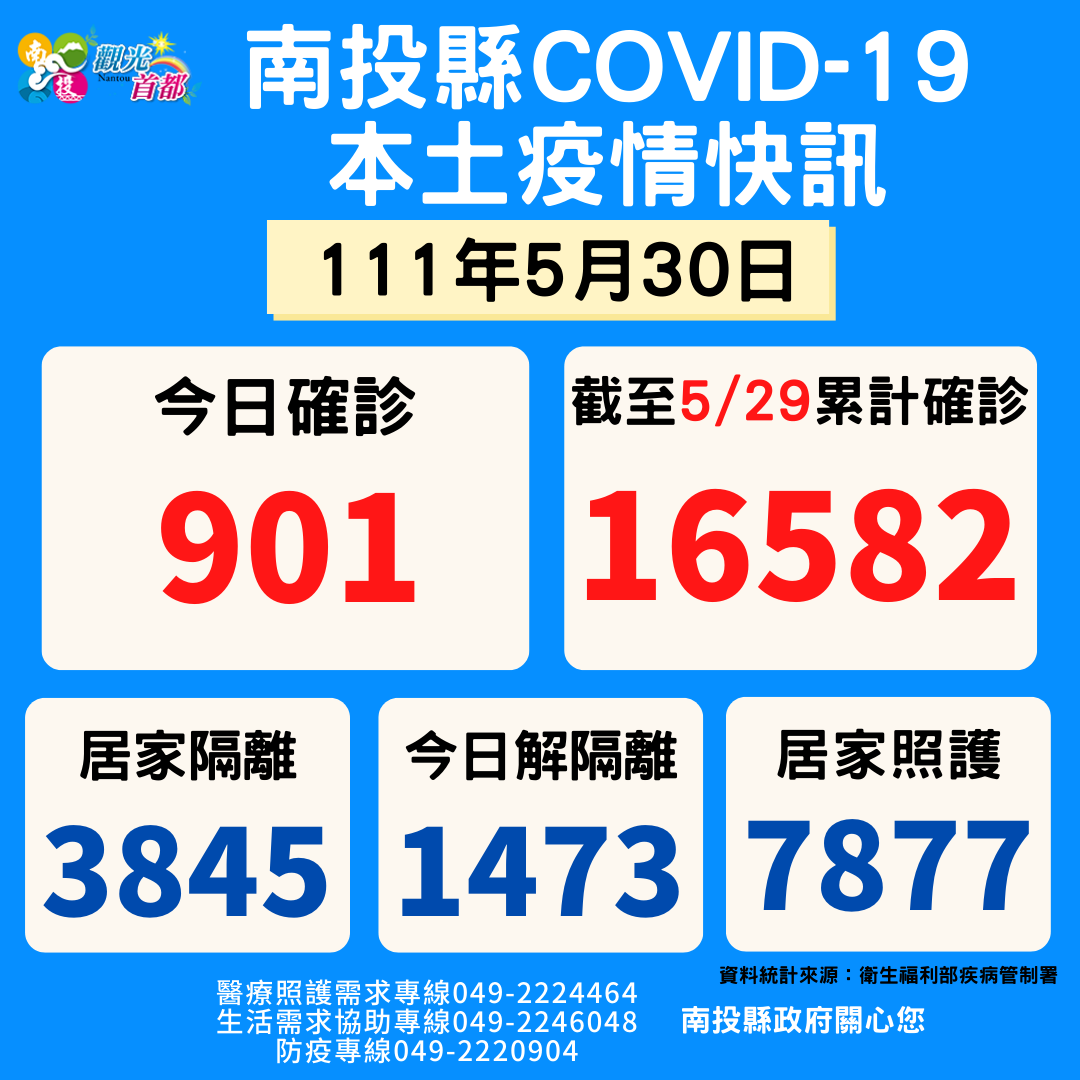 防疫宣傳 居家照護關懷手冊 防疫補助 勞工紓困 農漁畜牧 觀光紓困 企業紓困 租稅紓困 藝文紓困 中央各部會防疫專區 首頁 防疫宣傳 5月30日南投縣疫情... 5月30日南投縣疫情快訊 公佈單位:新聞及行政處 發佈日期:111/5/30