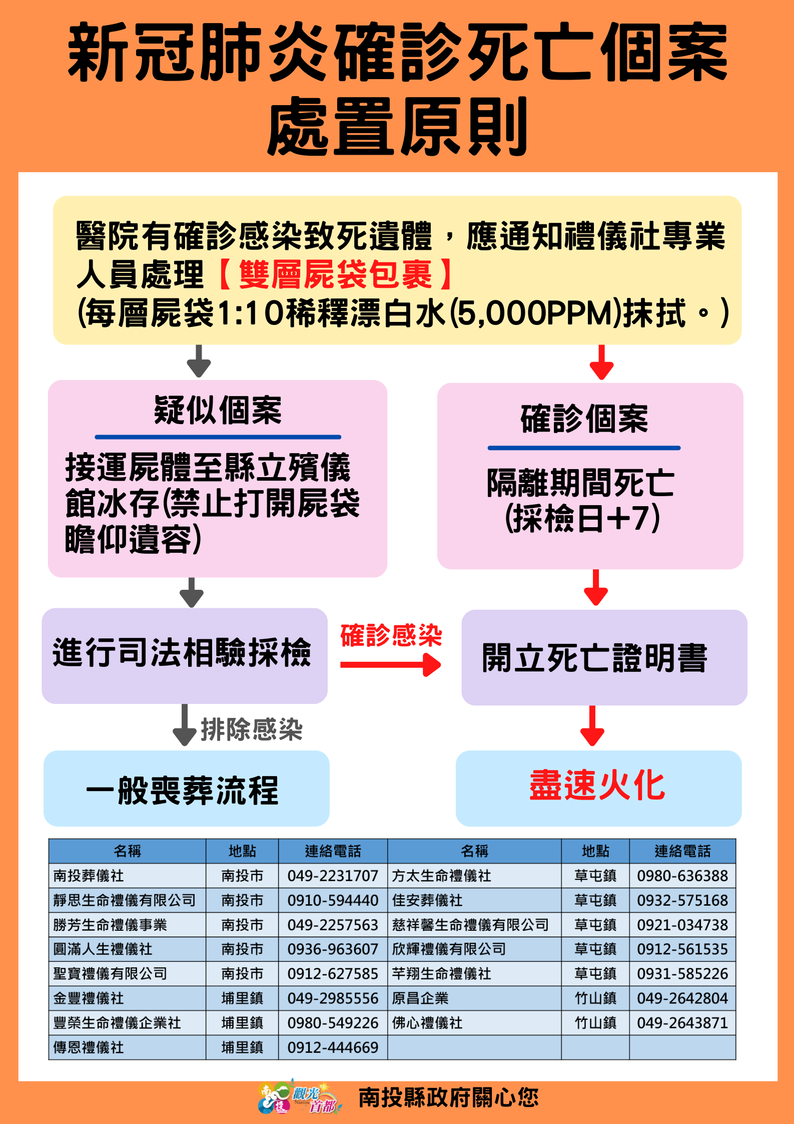 防疫宣傳 居家照護關懷手冊 防疫補助 勞工紓困 農漁畜牧 觀光紓困 企業紓困 租稅紓困 藝文紓困 中央各部會防疫專區 首頁 防疫宣傳 新冠肺炎確診死亡個案... 新冠肺炎確診死亡個案 處置原則 公佈單位:新聞及行政處 發佈日期:111/5/30