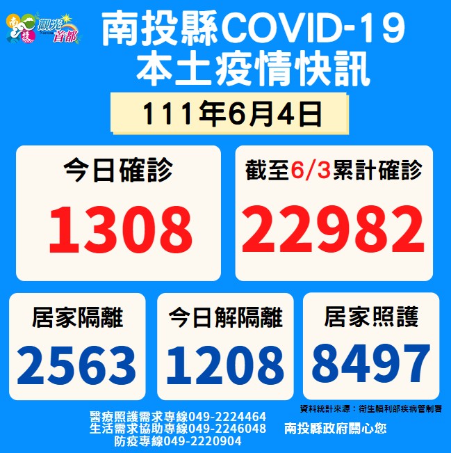 防疫宣傳 居家照護關懷手冊 防疫補助 勞工紓困 農漁畜牧 觀光紓困 企業紓困 租稅紓困 藝文紓困 中央各部會防疫專區 首頁 防疫宣傳 6月4日南投縣疫情快... 6月4日南投縣疫情快訊 公佈單位:新聞及行政處 發佈日期:111/6/5