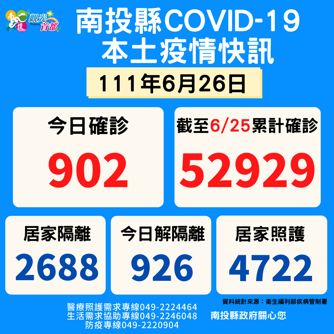 防疫宣傳 居家照護關懷手冊 防疫補助 勞工紓困 農漁畜牧 觀光紓困 企業紓困 租稅紓困 藝文紓困 中央各部會防疫專區 首頁 防疫宣傳 6月26日南投縣疫情... 6月26日南投縣疫情快訊 公佈單位:新聞及行政處 發佈日期:111/6/27