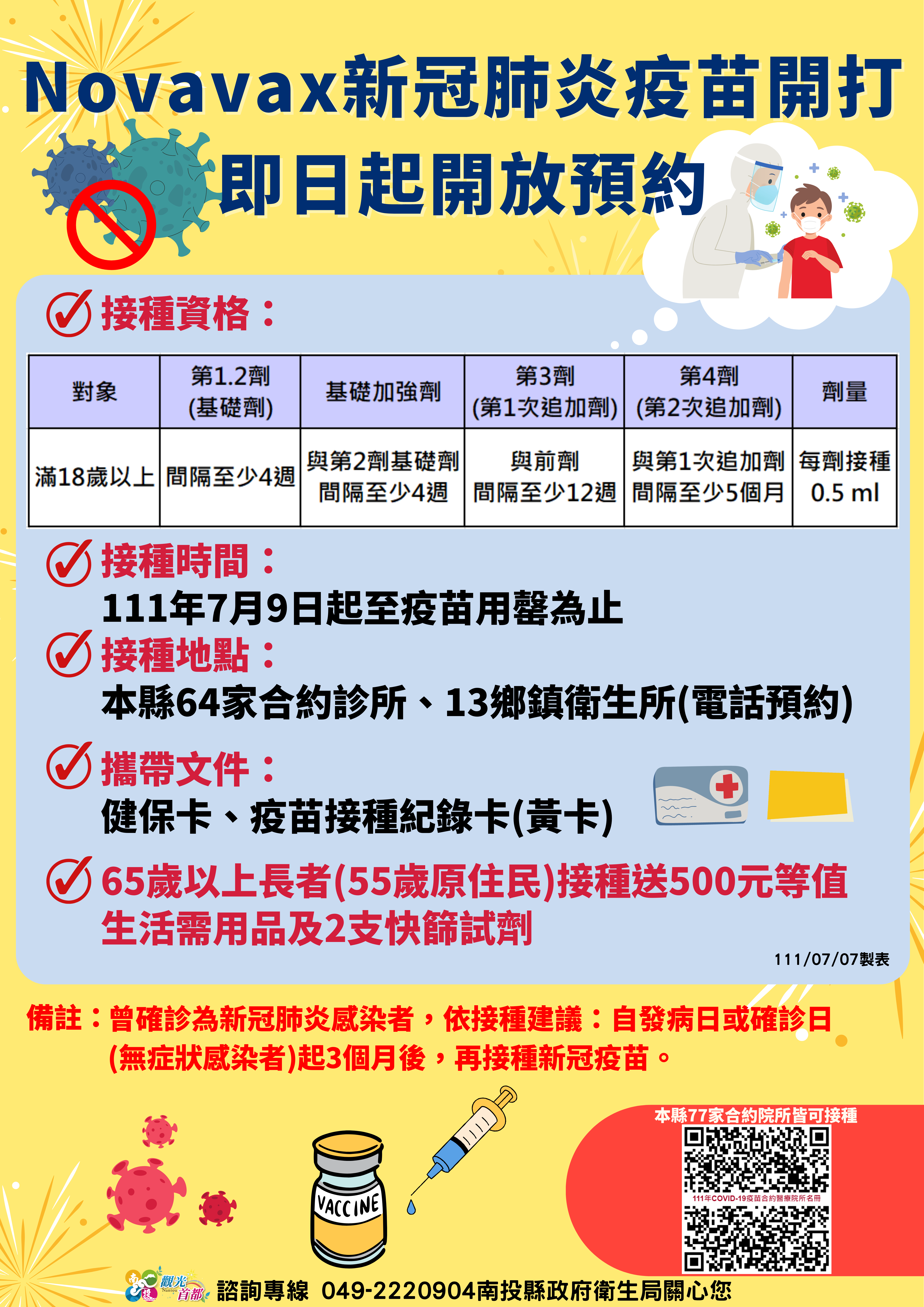 防疫宣傳 居家照護關懷手冊 防疫補助 勞工紓困 農漁畜牧 觀光紓困 企業紓困 租稅紓困 藝文紓困 中央各部會防疫專區 首頁 防疫宣傳 Novavax新冠肺... Novavax新冠肺炎疫苗開打 公佈單位:新聞及行政處 發佈日期:111/7/7