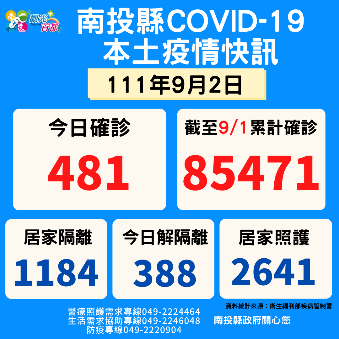 防疫宣傳 居家照護關懷手冊 防疫補助 勞工紓困 農漁畜牧 觀光紓困 企業紓困 租稅紓困 藝文紓困 中央各部會防疫專區 首頁 防疫宣傳 9月2日南投縣疫情快... 9月2日南投縣疫情快訊 公佈單位:新聞及行政處 發佈日期:111/9/2