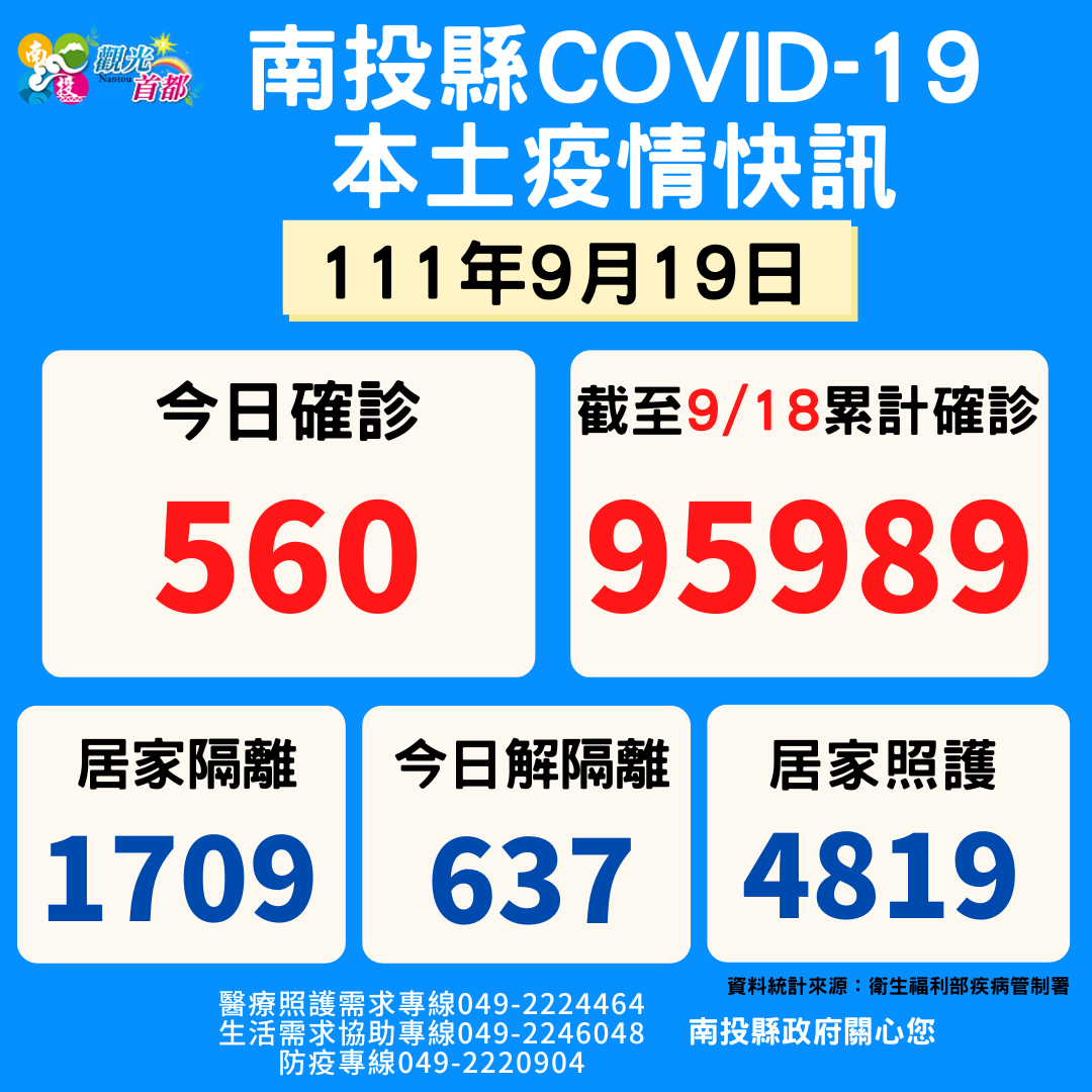 防疫宣傳 居家照護關懷手冊 防疫補助 勞工紓困 農漁畜牧 觀光紓困 企業紓困 租稅紓困 藝文紓困 中央各部會防疫專區 首頁 防疫宣傳 9/19南投縣疫情快... 9/19南投縣疫情快訊 公佈單位:新聞及行政處 發佈日期:111/9/19