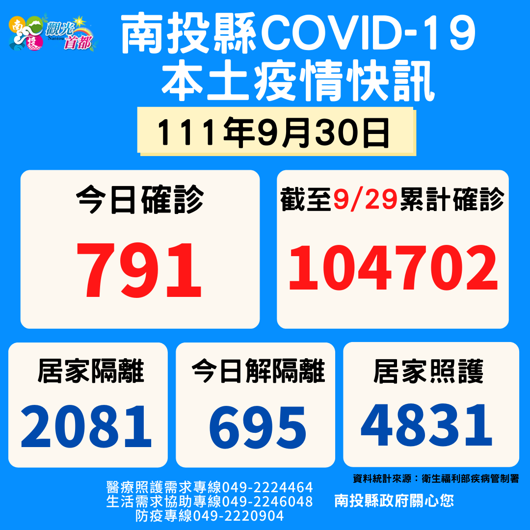 防疫宣傳 居家照護關懷手冊 防疫補助 勞工紓困 農漁畜牧 觀光紓困 企業紓困 租稅紓困 藝文紓困 中央各部會防疫專區 首頁 防疫宣傳 9/30南投縣疫情快... 9/30南投縣疫情快訊 公佈單位:新聞及行政處 發佈日期:111/9/30