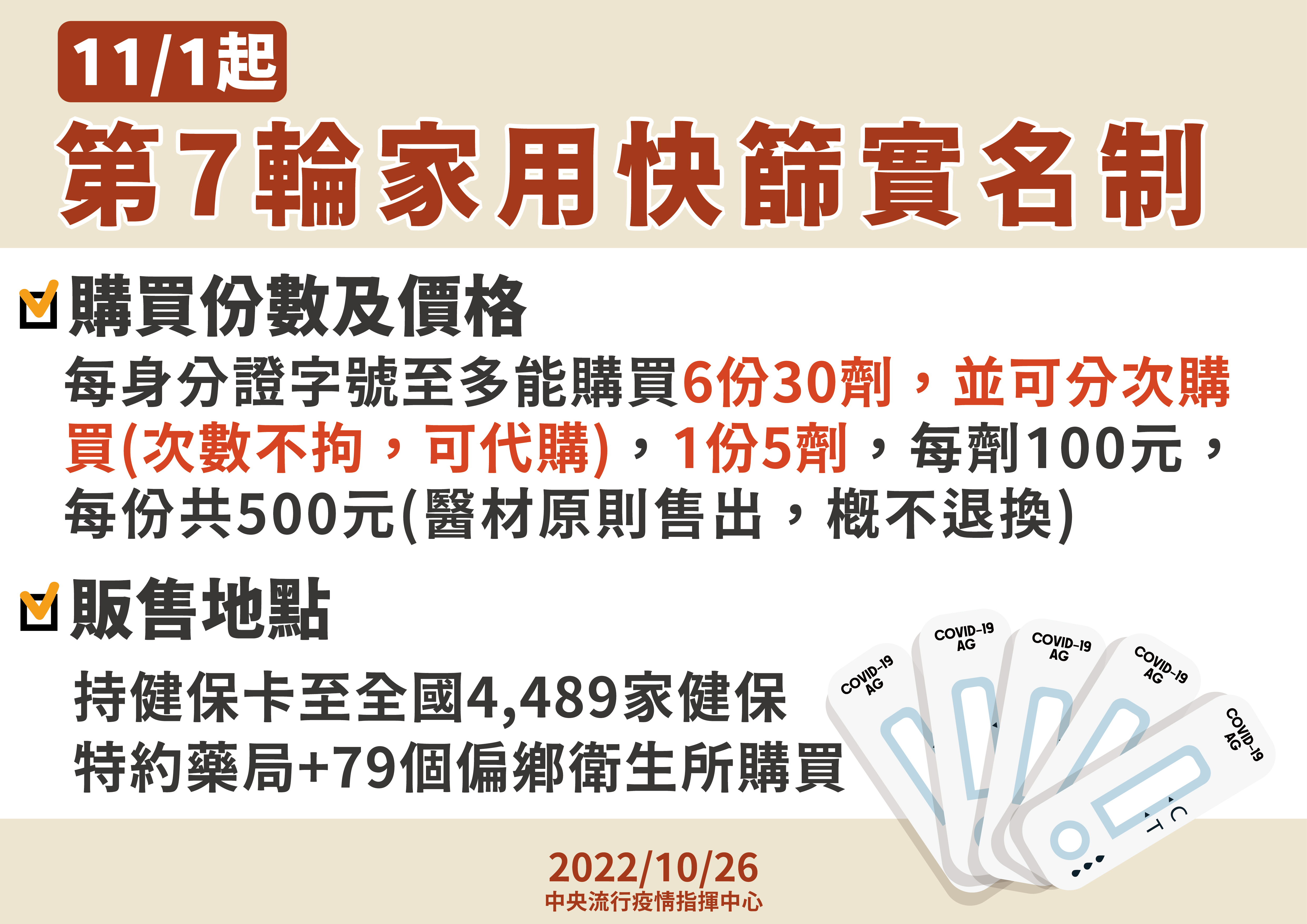 衛生局長陳南松提醒,11/1起免費提供65歲以上長者與0~6歲幼兒(2016/9/2(含)以後出生者)每人5劑家用快篩試劑,可持長者或幼兒的健保卡至快篩實名制販售據點免費領取。為維護原住民的健康,55歲至64歲的原住民,11/10起每人可免費領用5劑家用快篩試劑,符合條件且有需要的民眾可攜帶戶口名簿或戶籍謄本至戶籍所在地的鄉鎮市公所領取。請務必注意家用快篩試劑僅提供給2歲以上幼童使用,本縣家用快篩販售地點詳見:https://reurl.cc/QWnO3Z