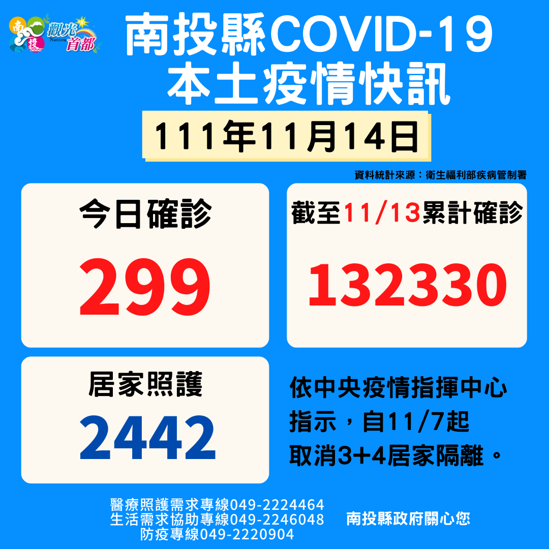 防疫宣傳 居家照護關懷手冊 防疫補助 勞工紓困 農漁畜牧 觀光紓困 企業紓困 租稅紓困 藝文紓困 中央各部會防疫專區 首頁 防疫宣傳 11月14日南投縣疫... 11月14日南投縣疫情快訊 公佈單位:新聞及行政處 發佈日期:111/11/14