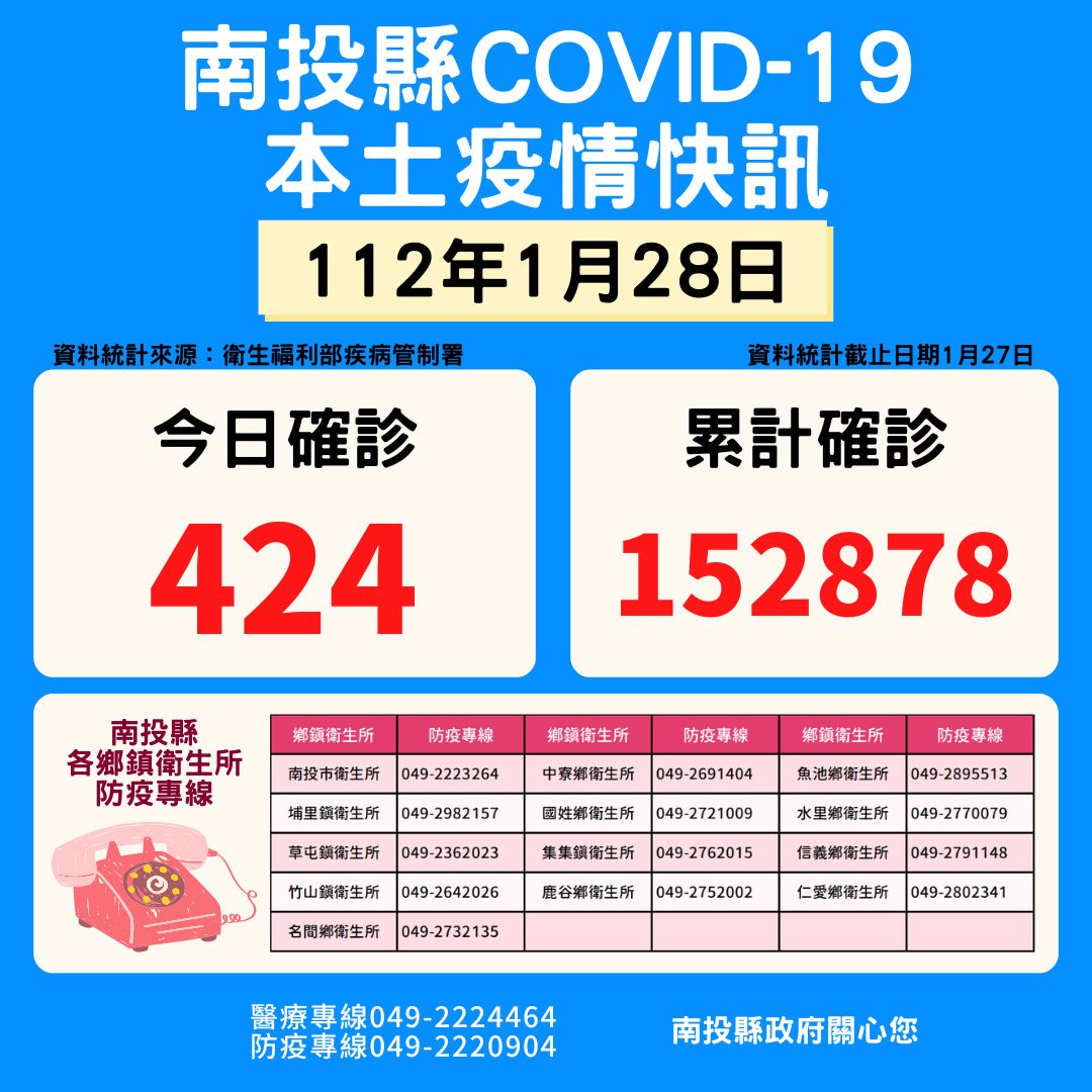 防疫宣傳 居家照護關懷手冊 防疫補助 勞工紓困 農漁畜牧 觀光紓困 企業紓困 租稅紓困 藝文紓困 中央各部會防疫專區 首頁 防疫宣傳 01月28日南投縣疫... 01月28日南投縣疫情快訊 公佈單位:新聞及行政處 發佈日期:112/1/29