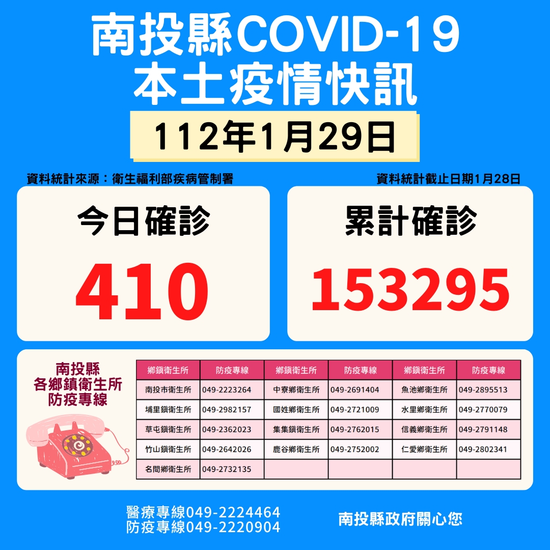 防疫宣傳 居家照護關懷手冊 防疫補助 勞工紓困 農漁畜牧 觀光紓困 企業紓困 租稅紓困 藝文紓困 中央各部會防疫專區 首頁 防疫宣傳 01月29日南投縣疫... 01月29日南投縣疫情快訊 公佈單位:新聞及行政處 發佈日期:112/1/29