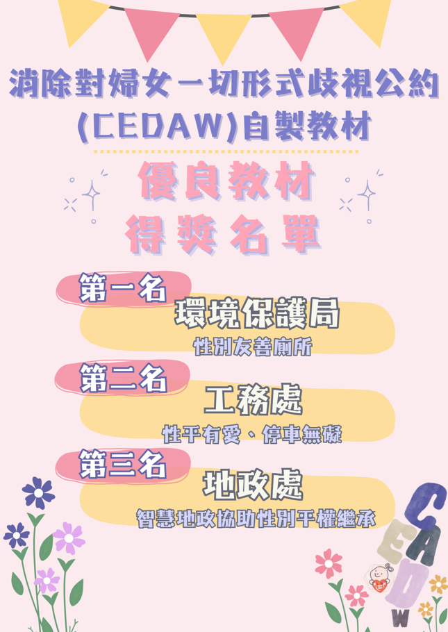 「消除對婦女一切形式歧視公約(以下簡稱CEDAW)自製教材」優良教材得獎名單公告~~